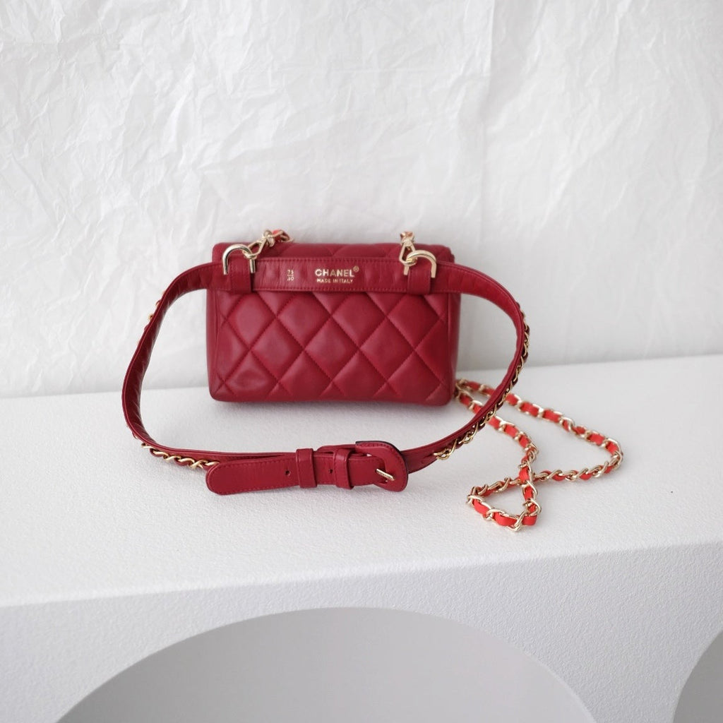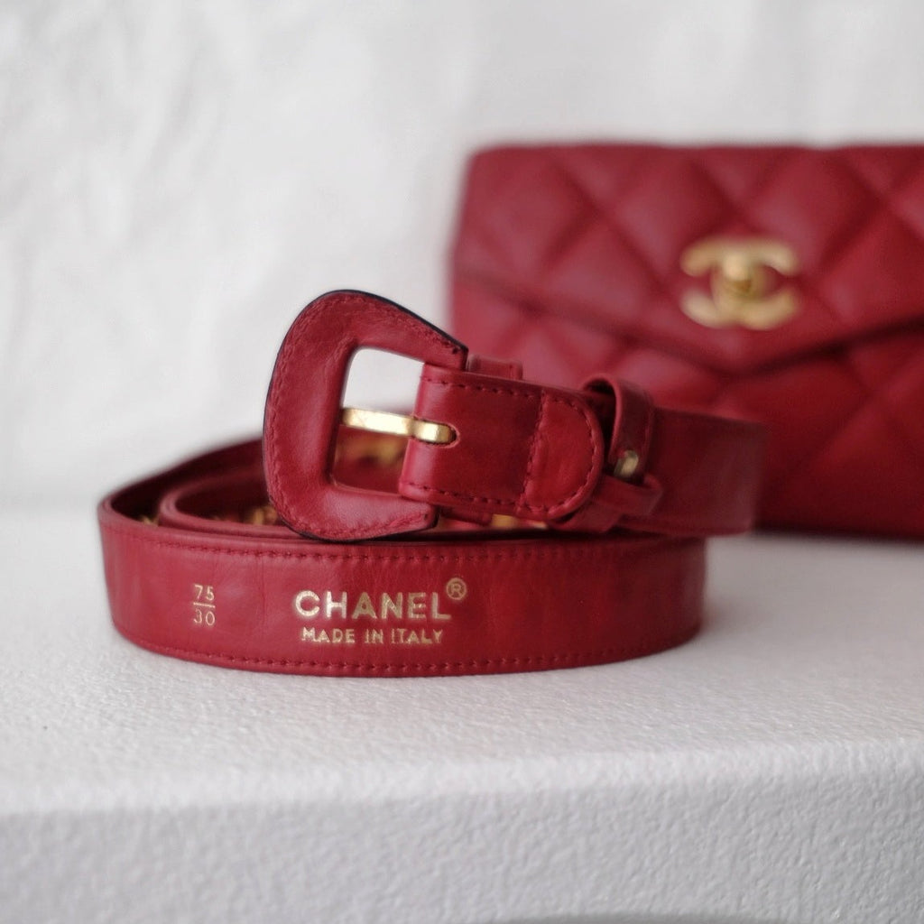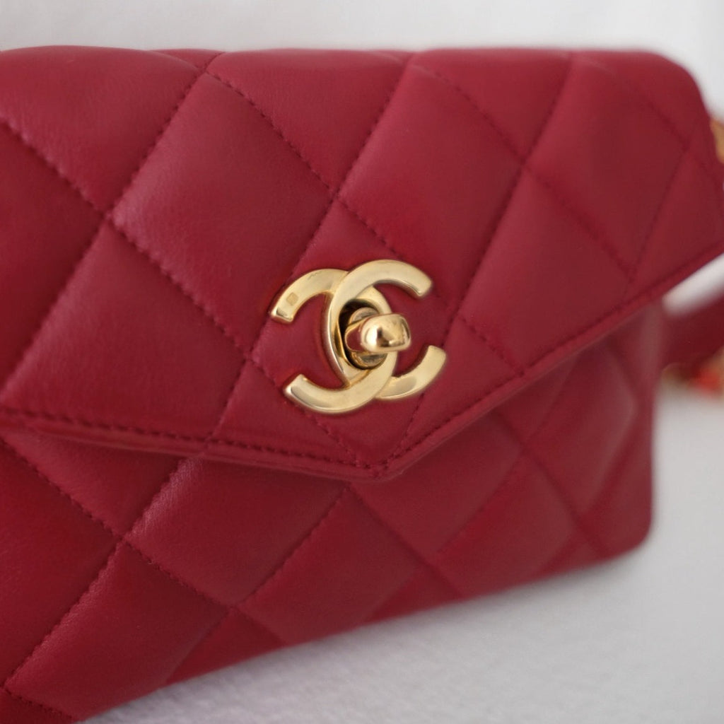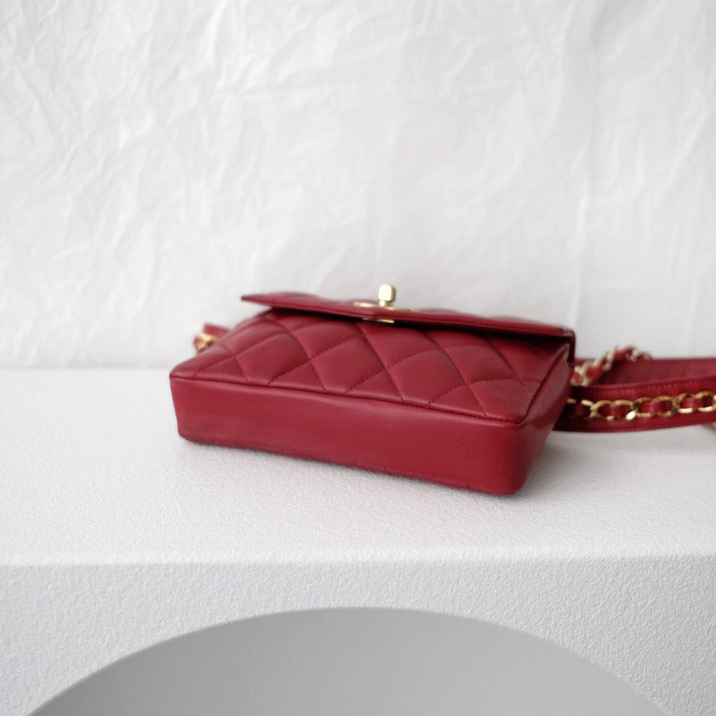 Chanel vintage quilted sheepskin CC belt bag+chain