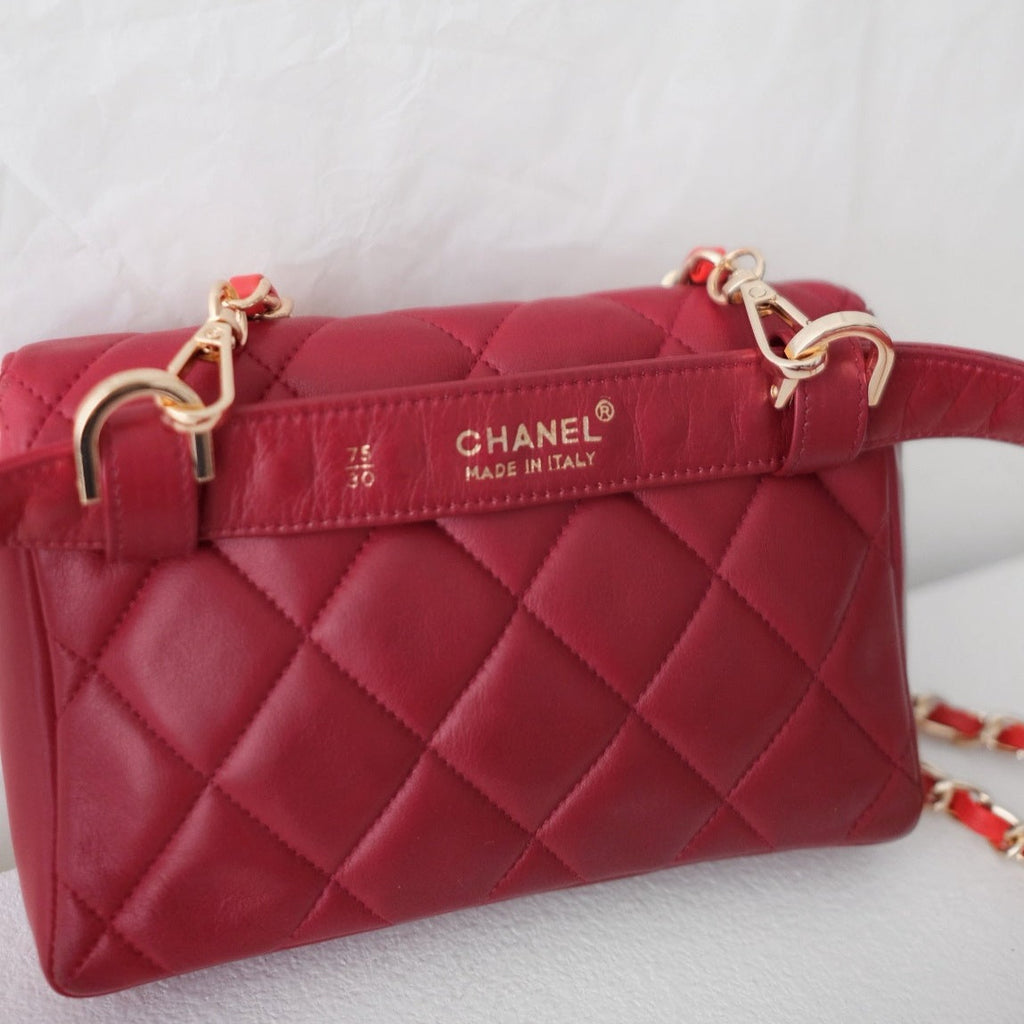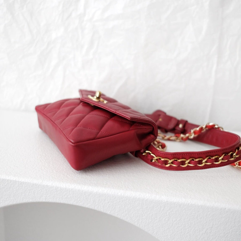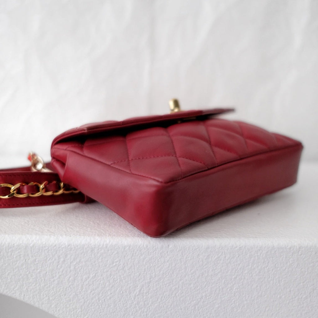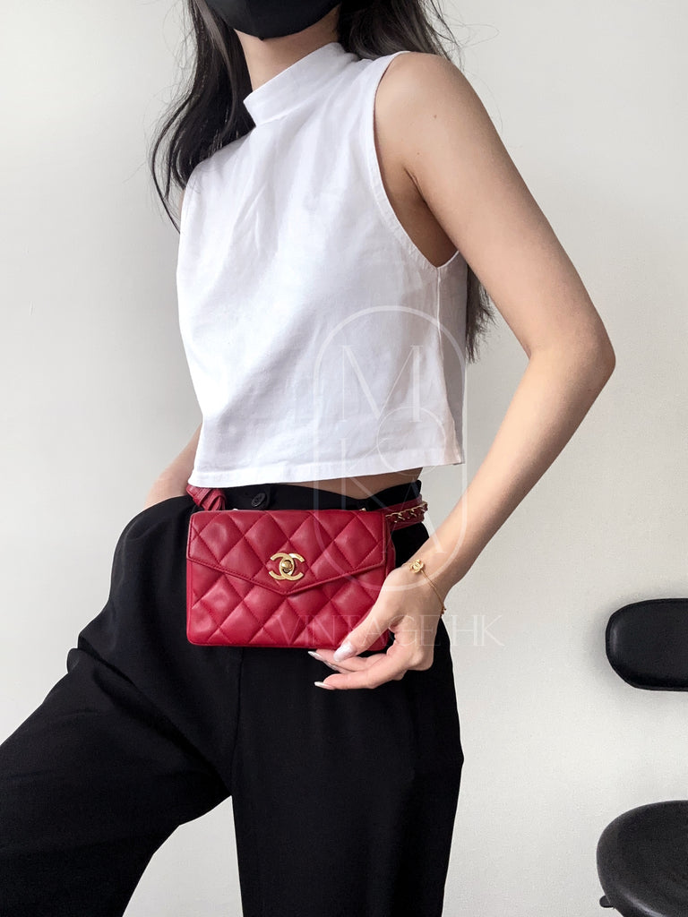 Chanel vintage quilted sheepskin CC belt bag+chain