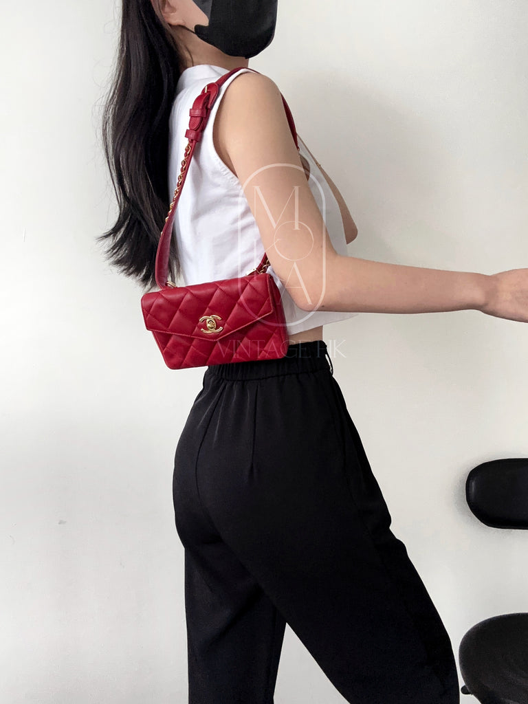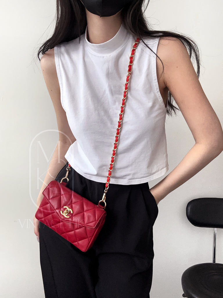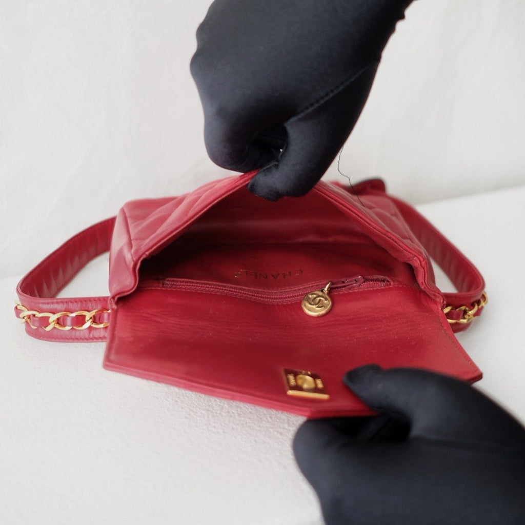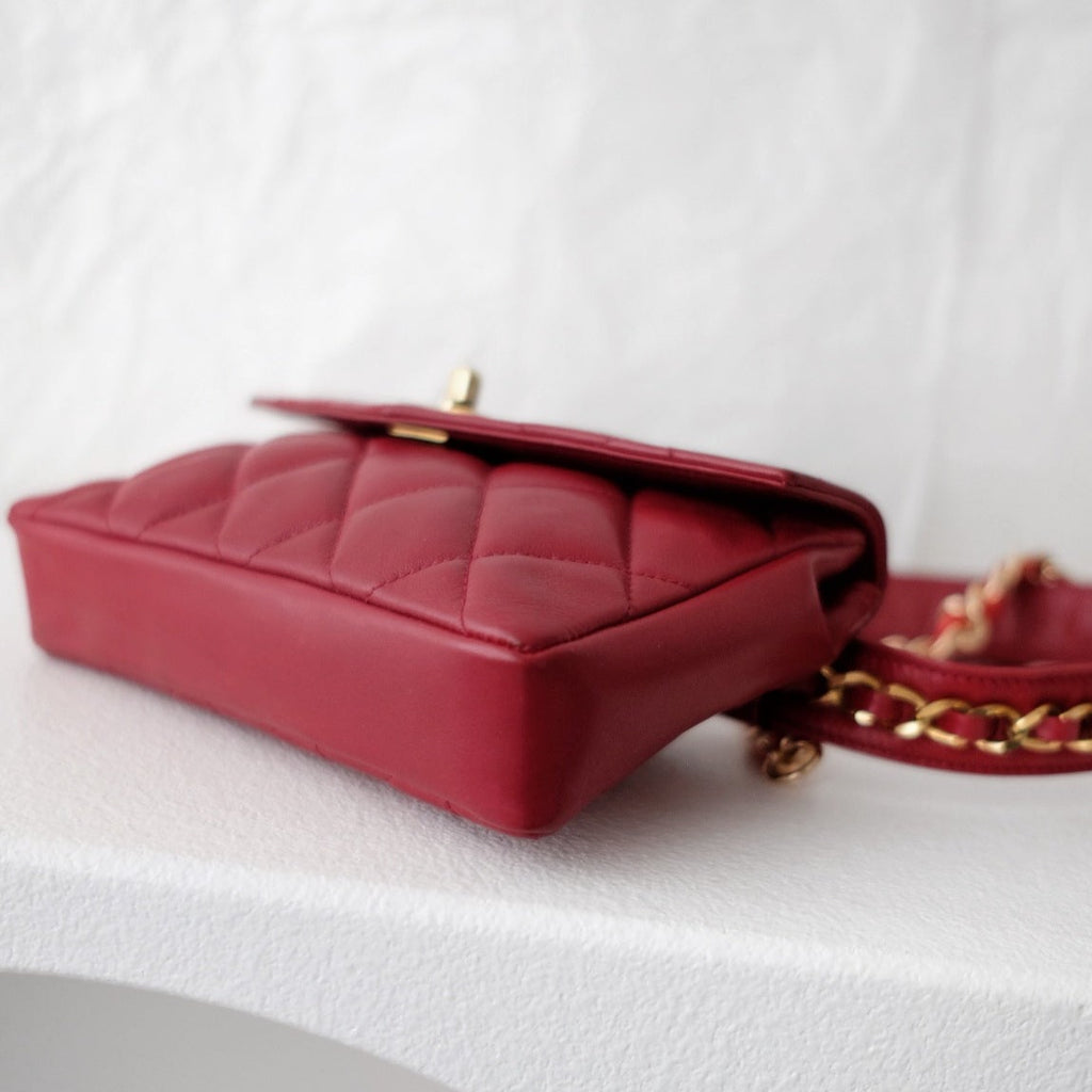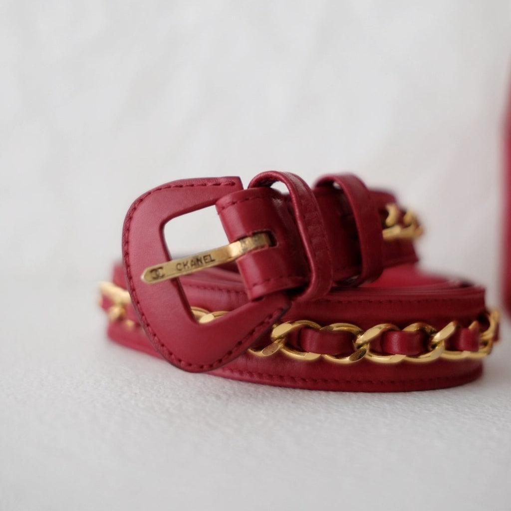 Chanel vintage quilted sheepskin CC belt bag+chain