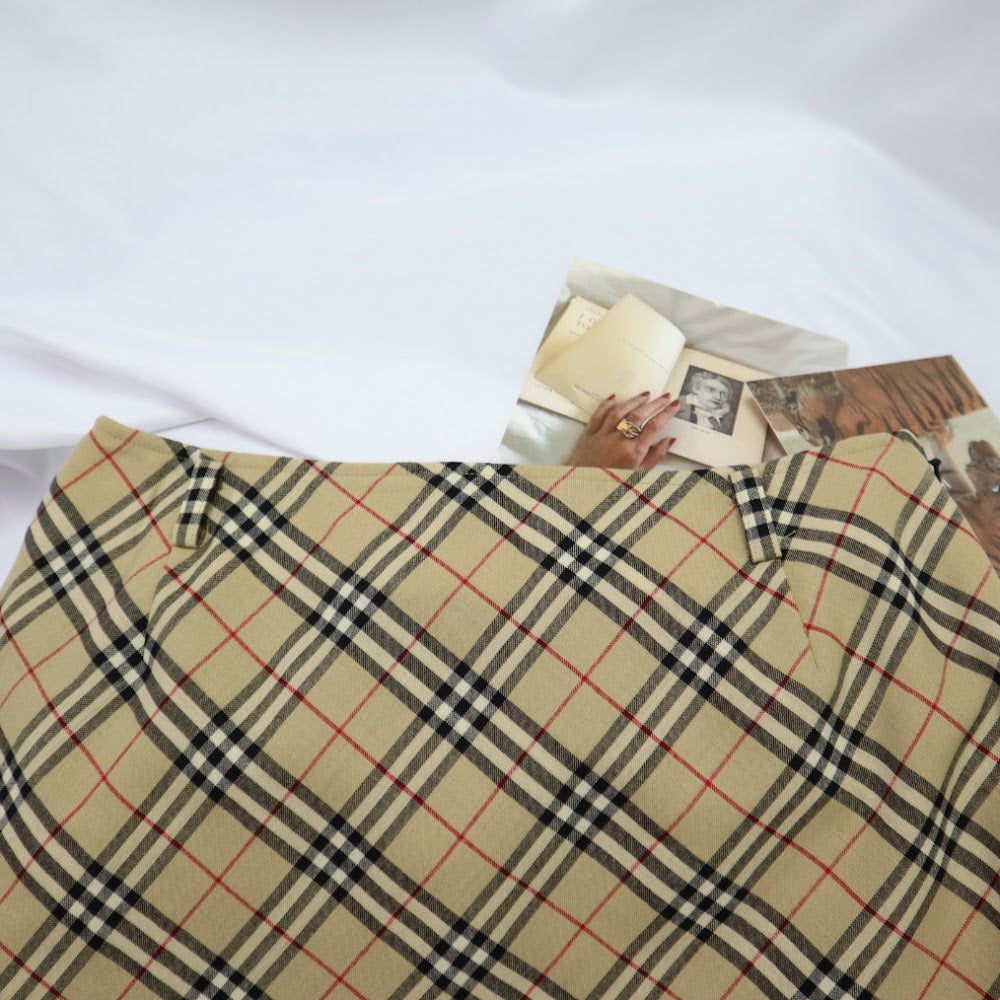 *經典斜格紋短裙 唔易皺 側面隱形拉鍊 背面左下角有一處極輕微瑕疵(圖三)