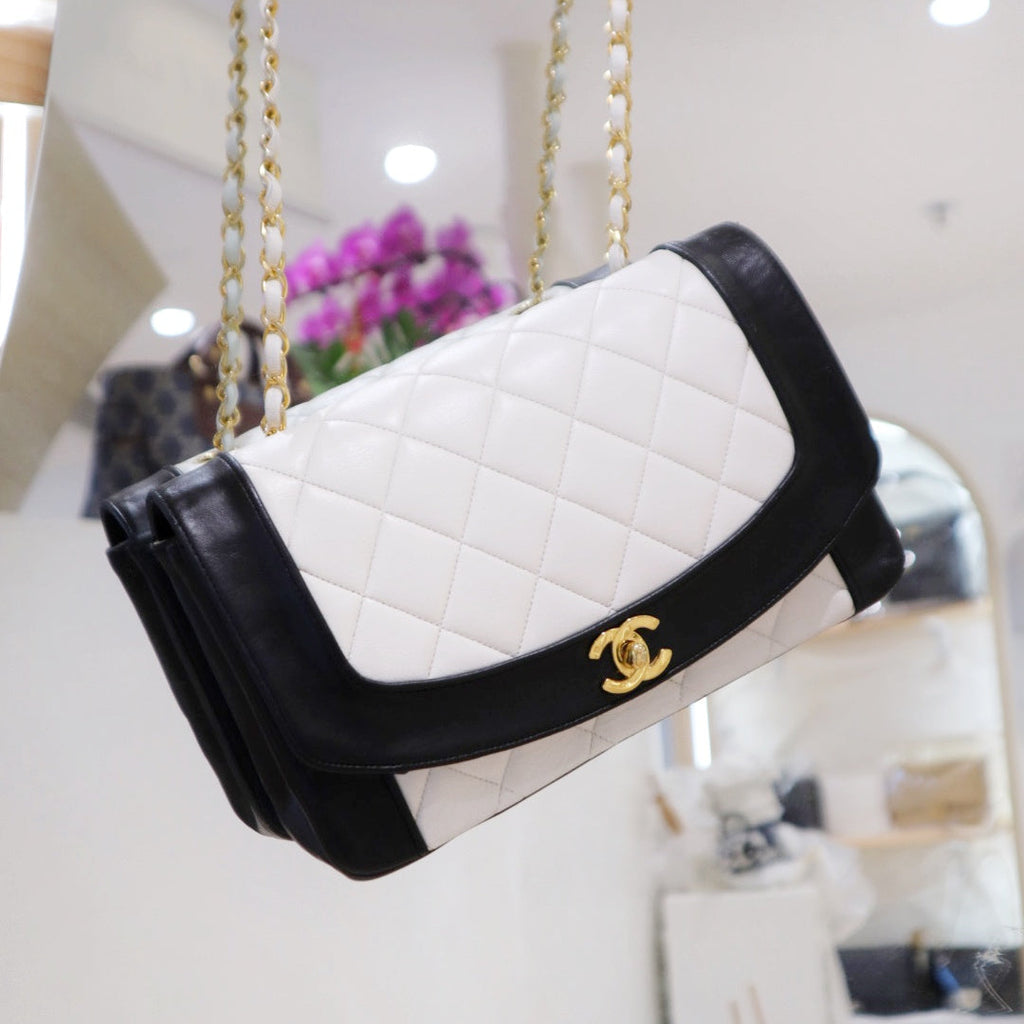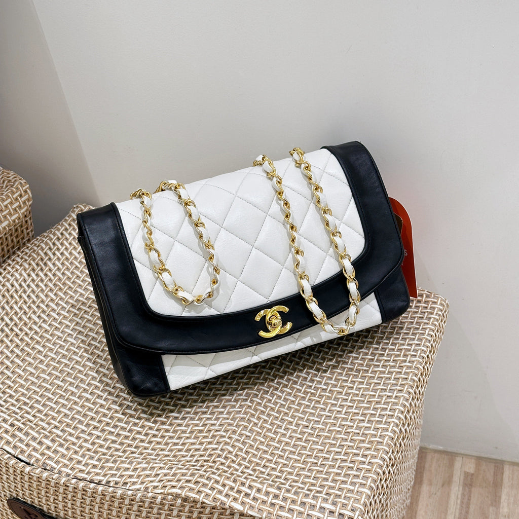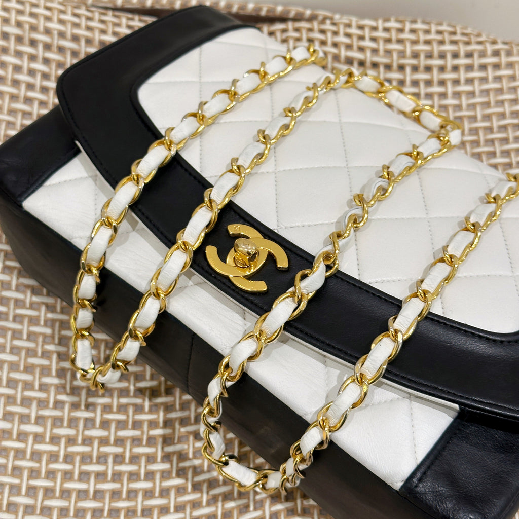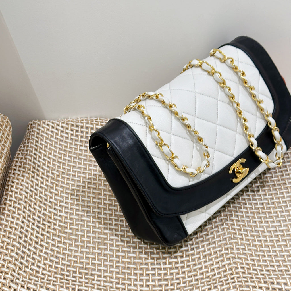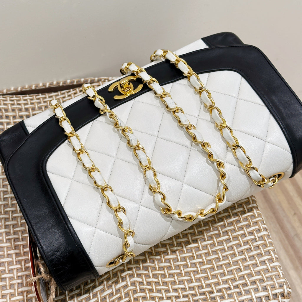 Chanel Vintage Black/White Lambskin Dianan Class Flap 25cm