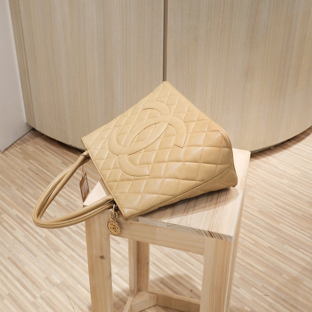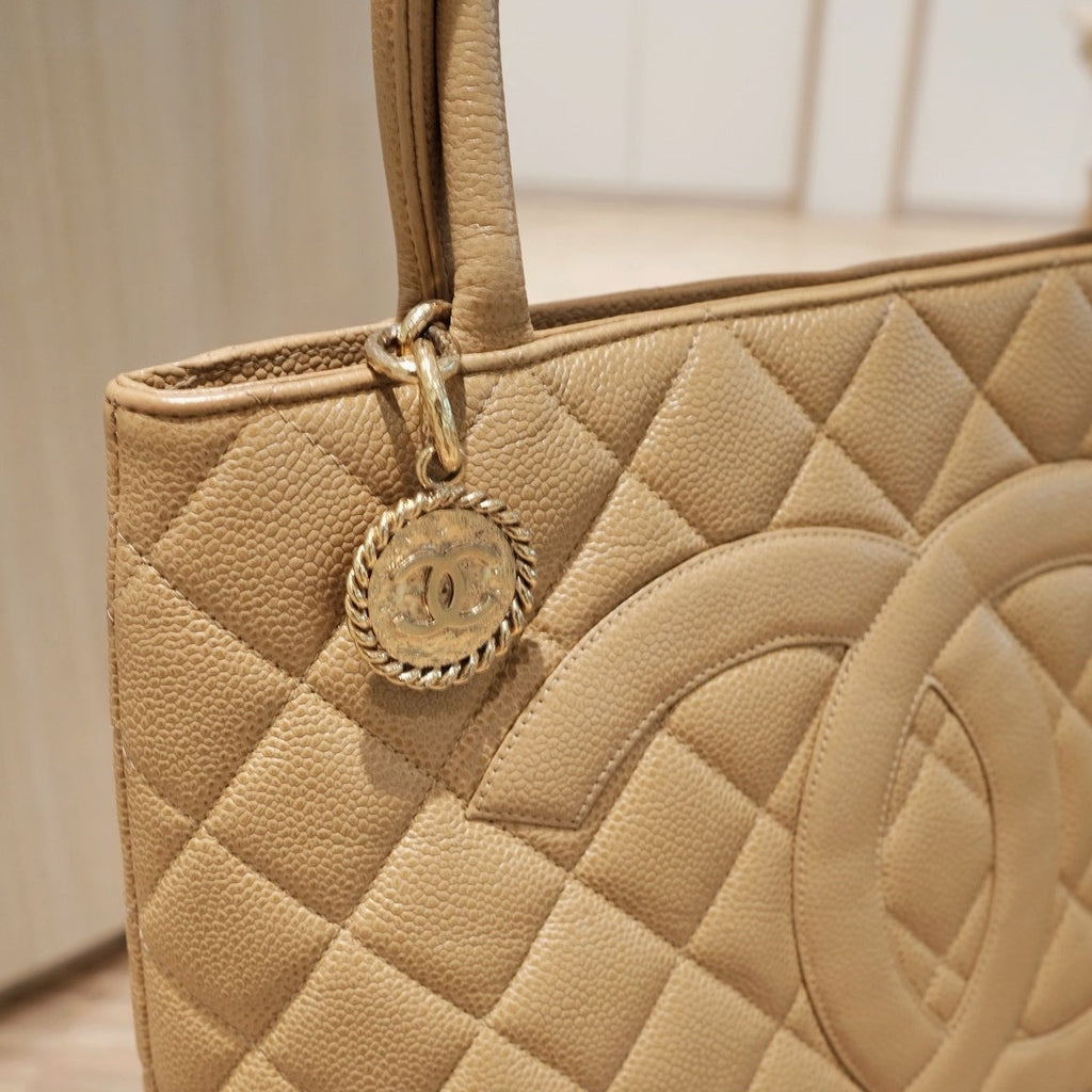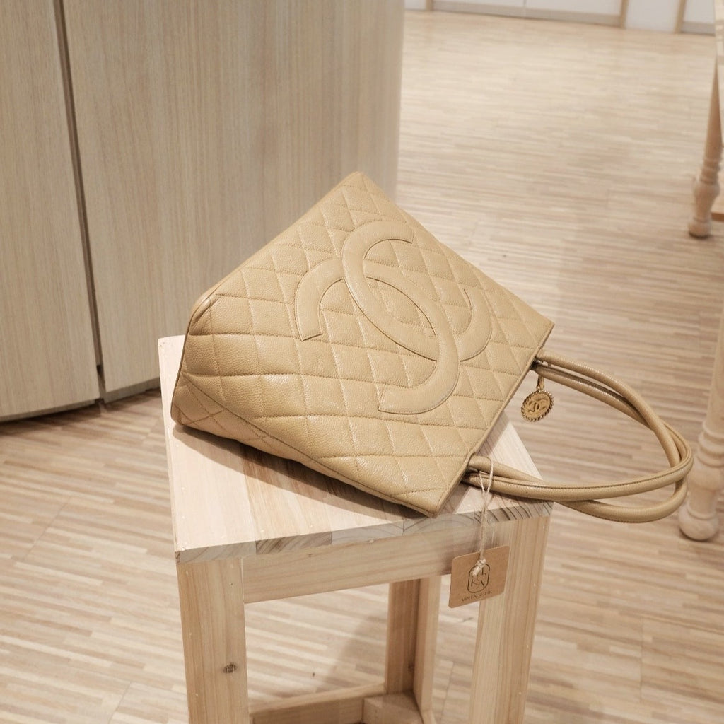 Chanel vintage medallion beige tote bag