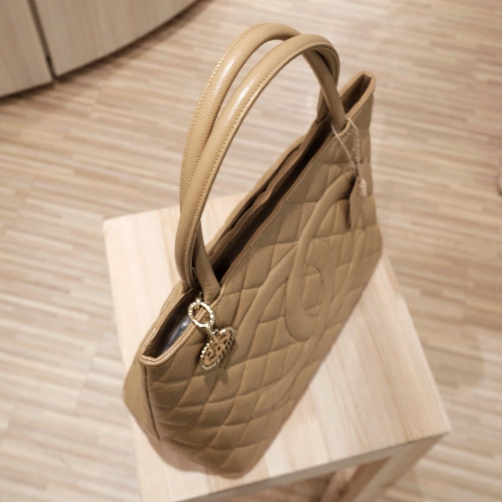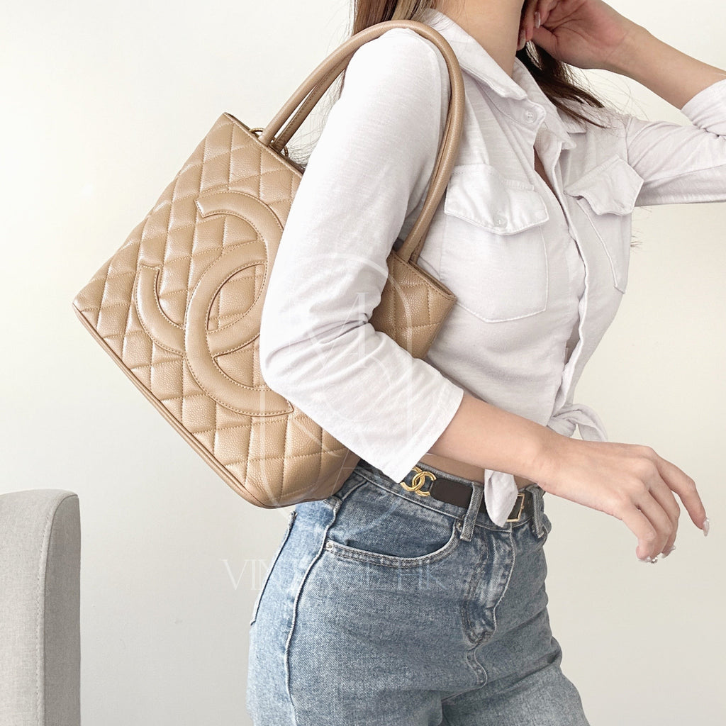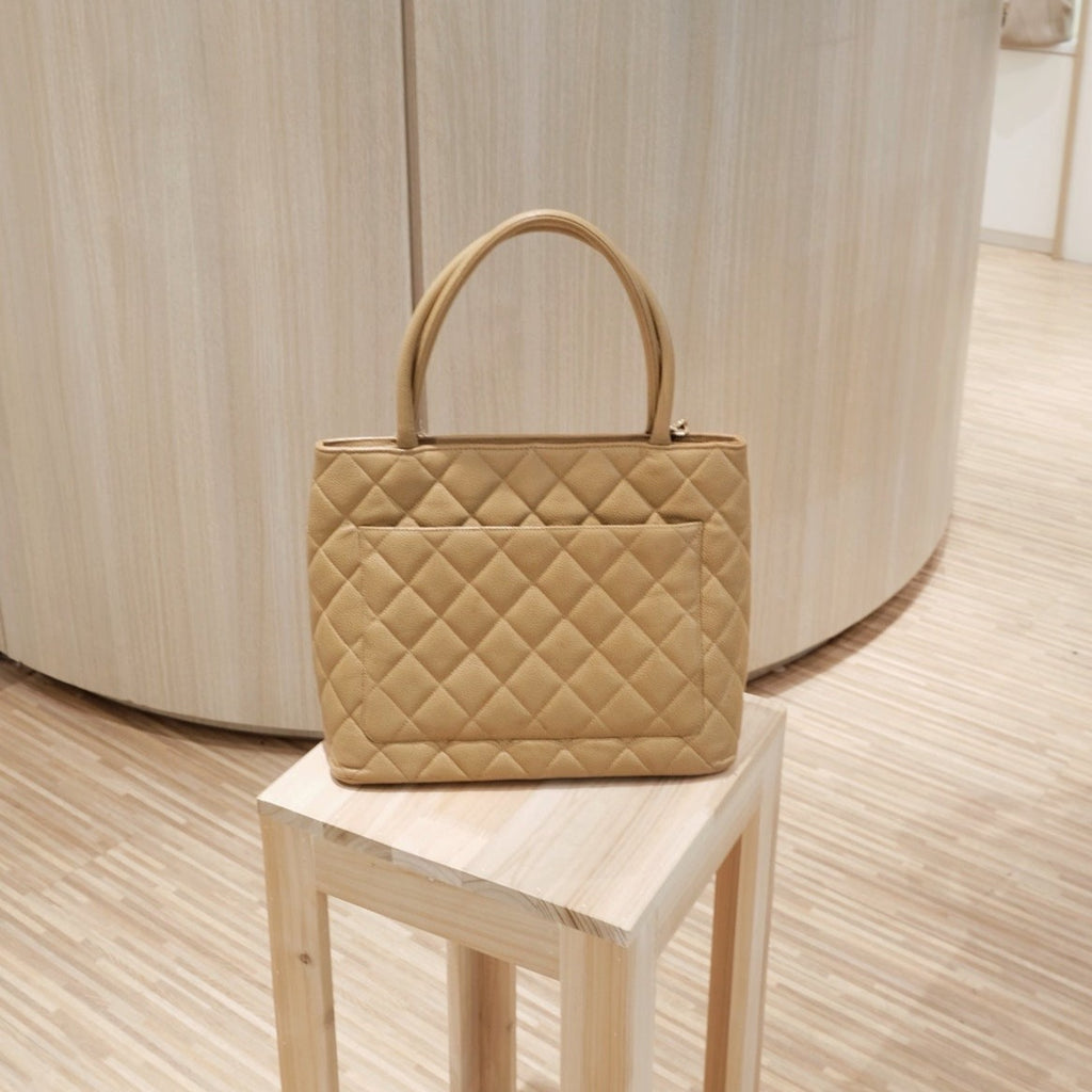 Chanel vintage medallion beige tote bag