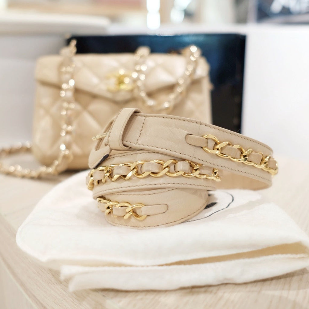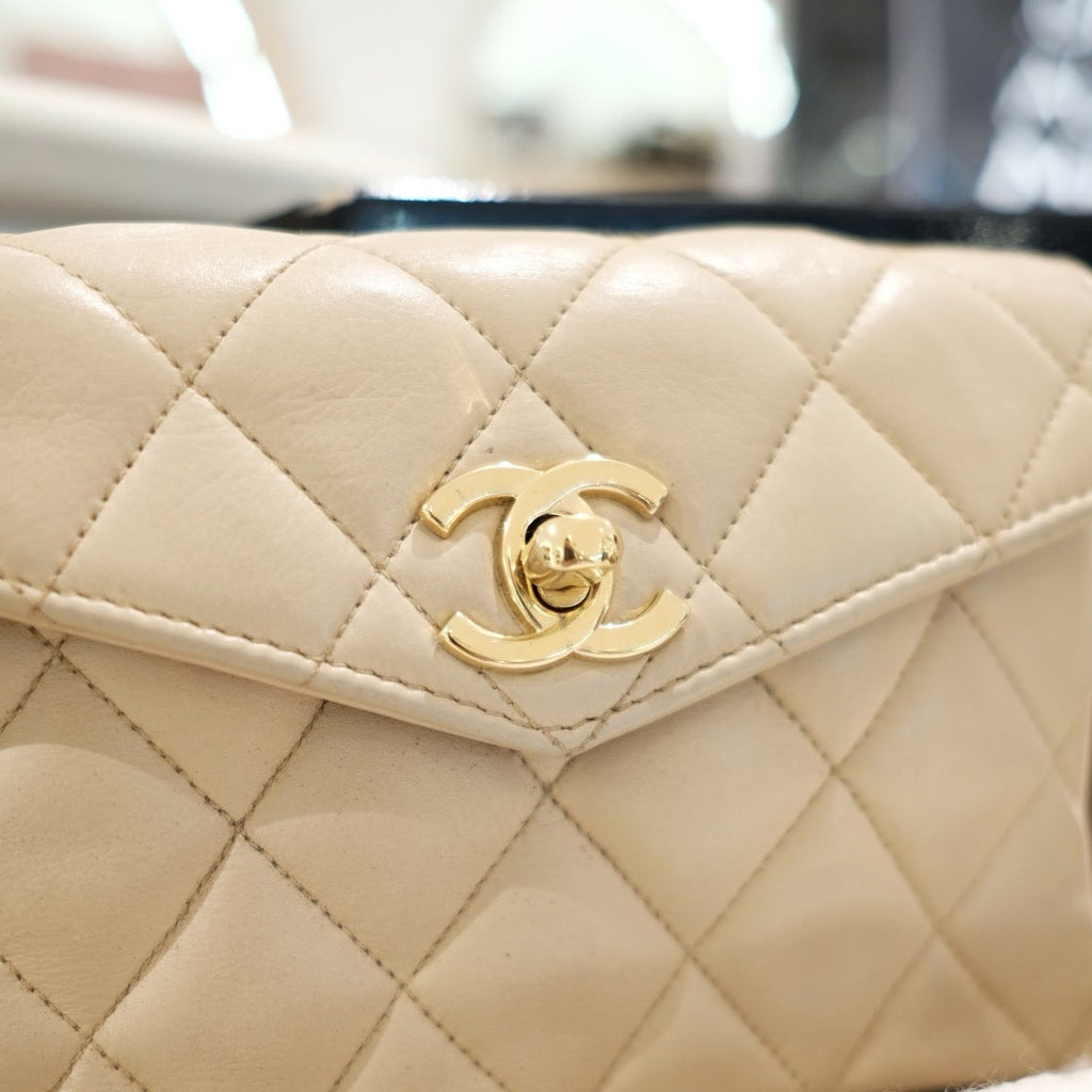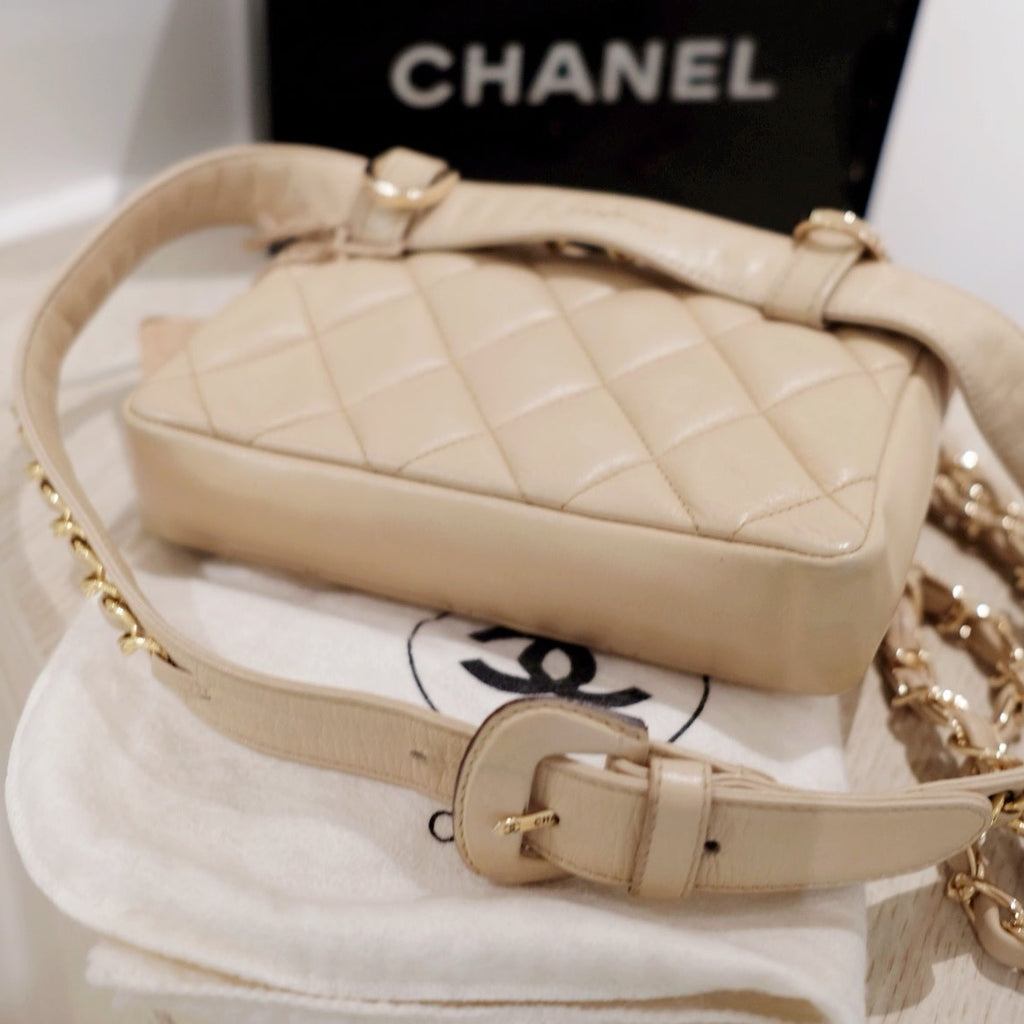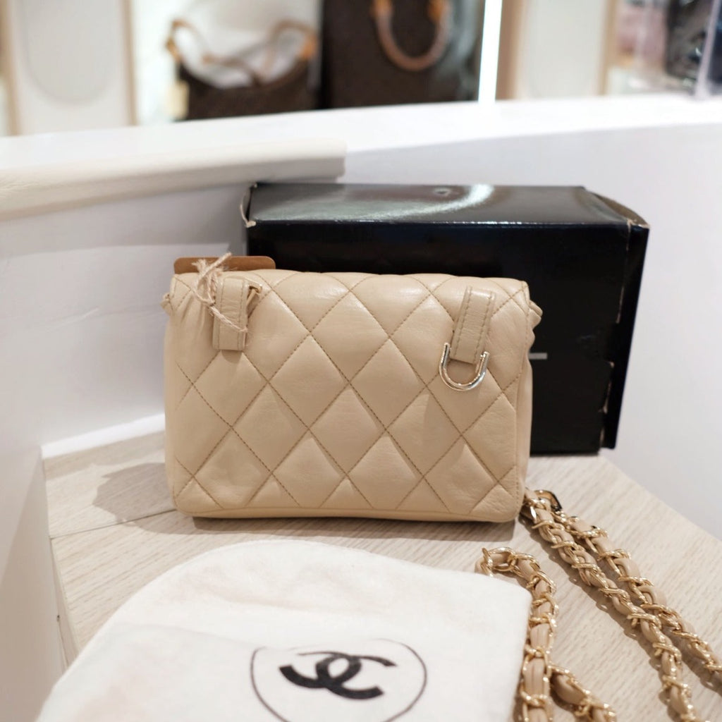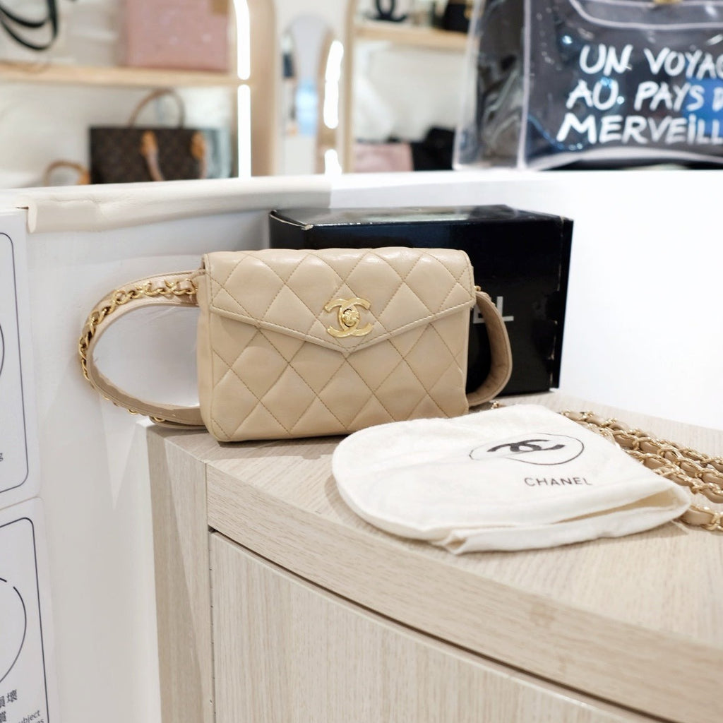 Chanel vintage quilted sheepskin CC belt bag+chain