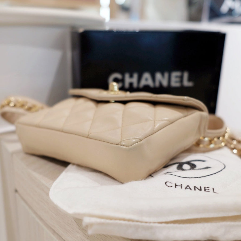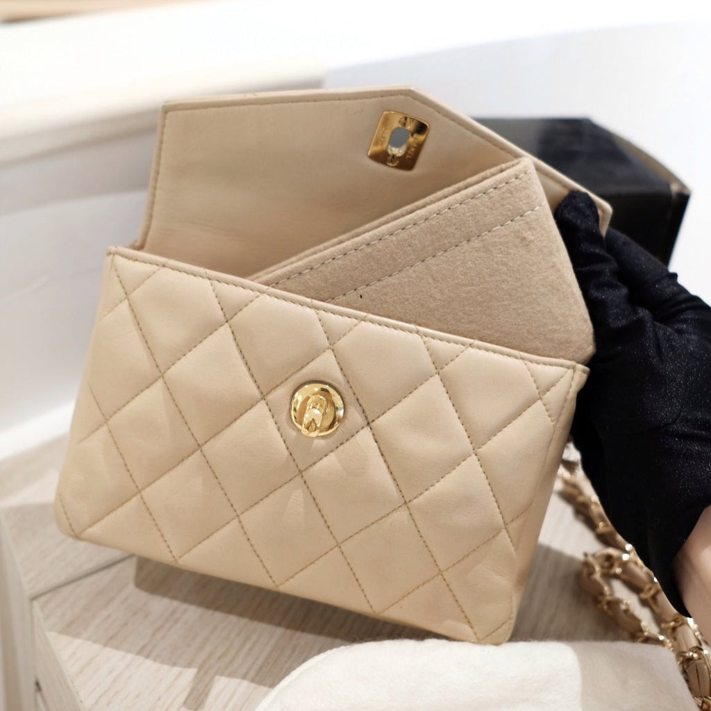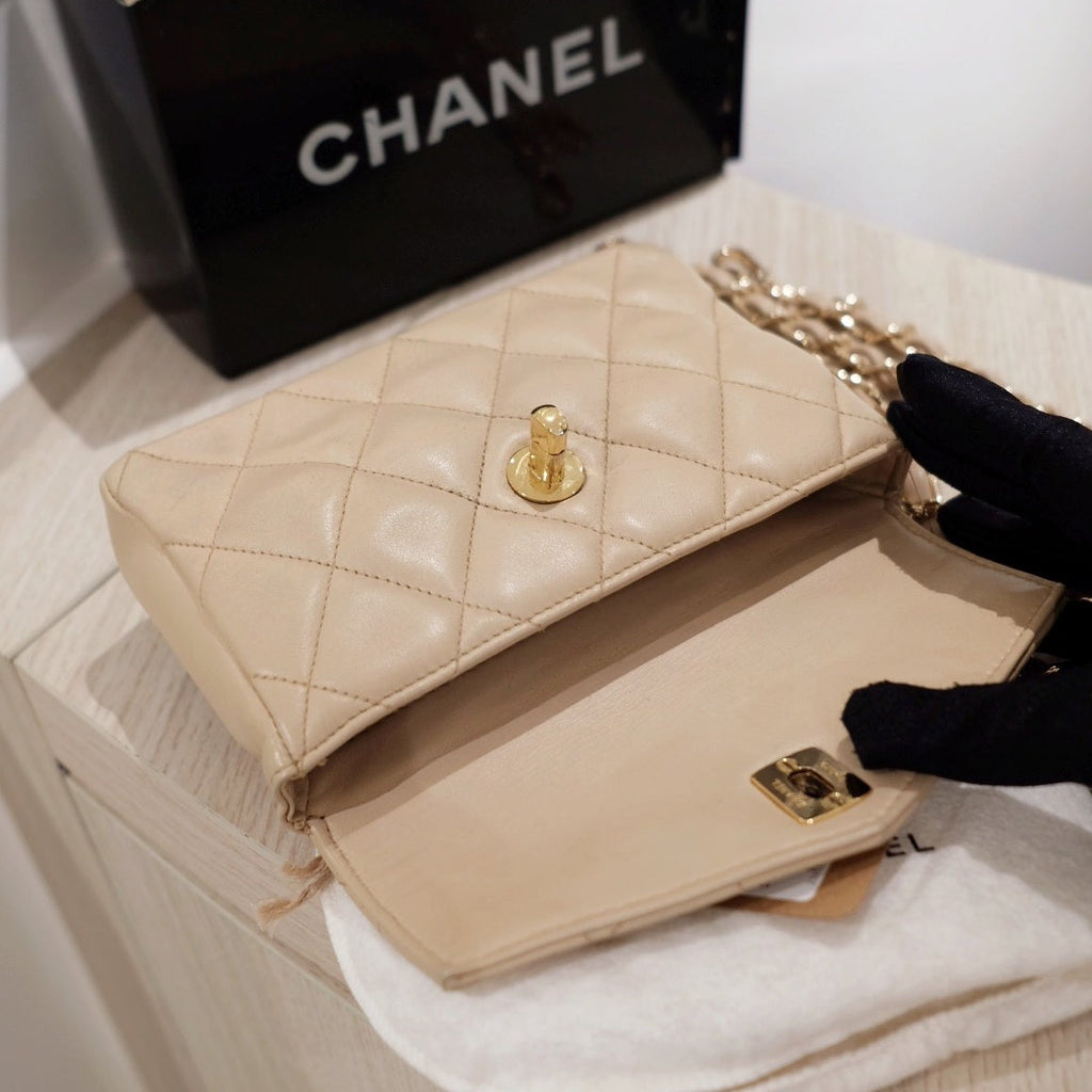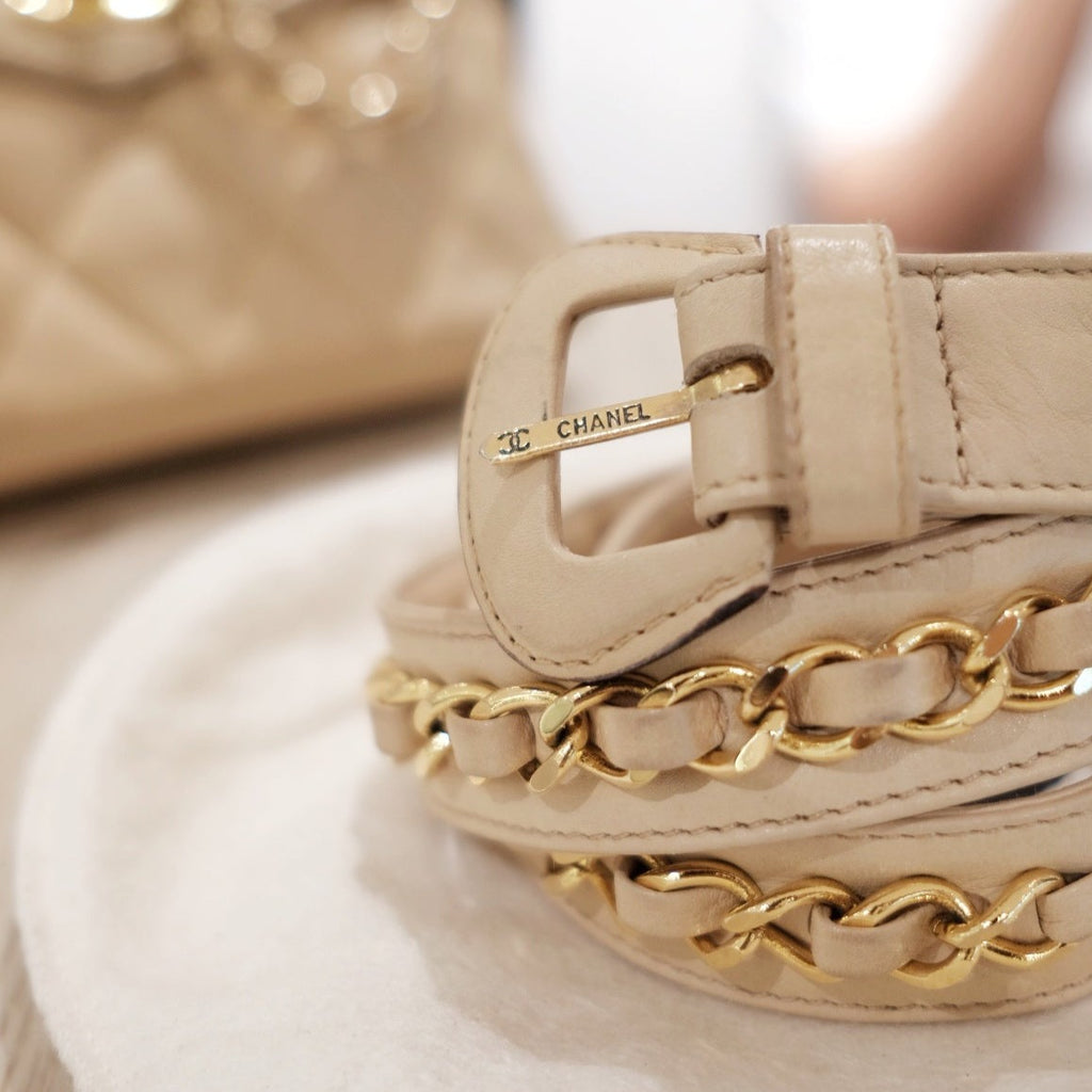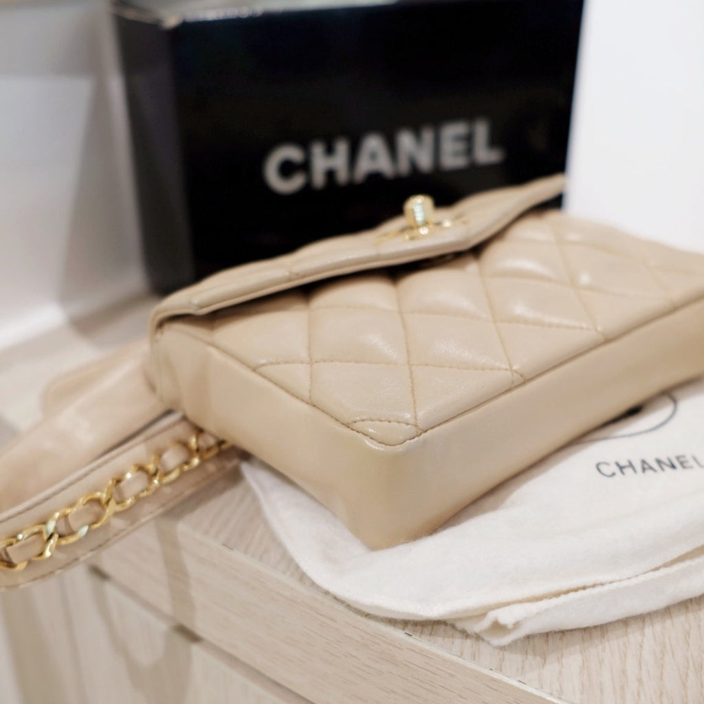 Chanel vintage quilted sheepskin CC belt bag+chain