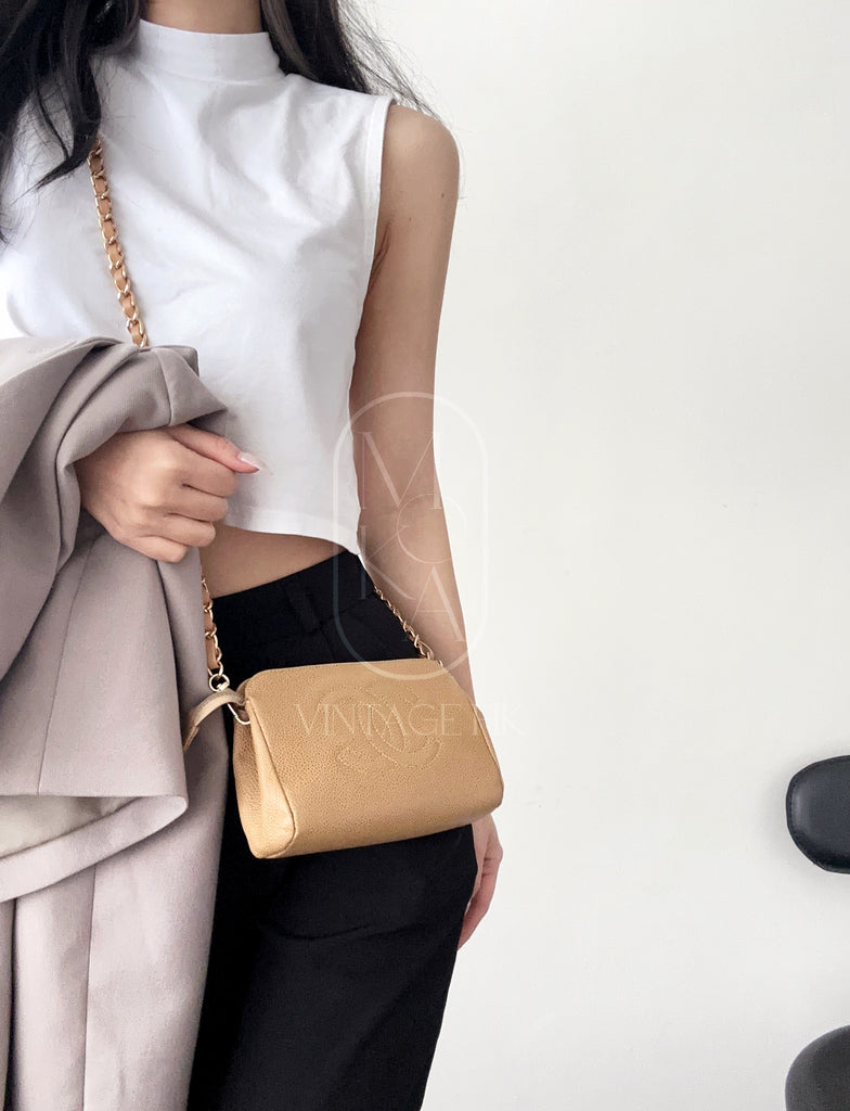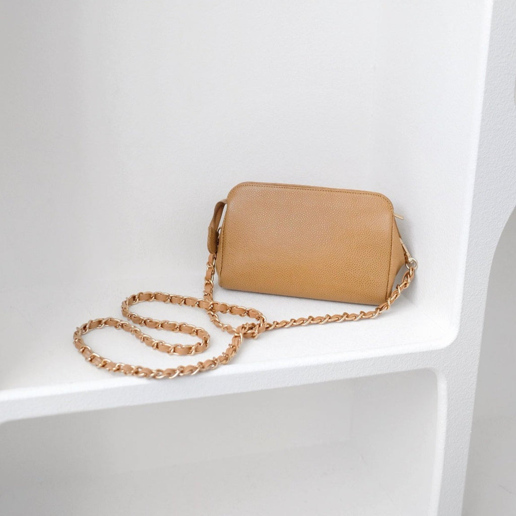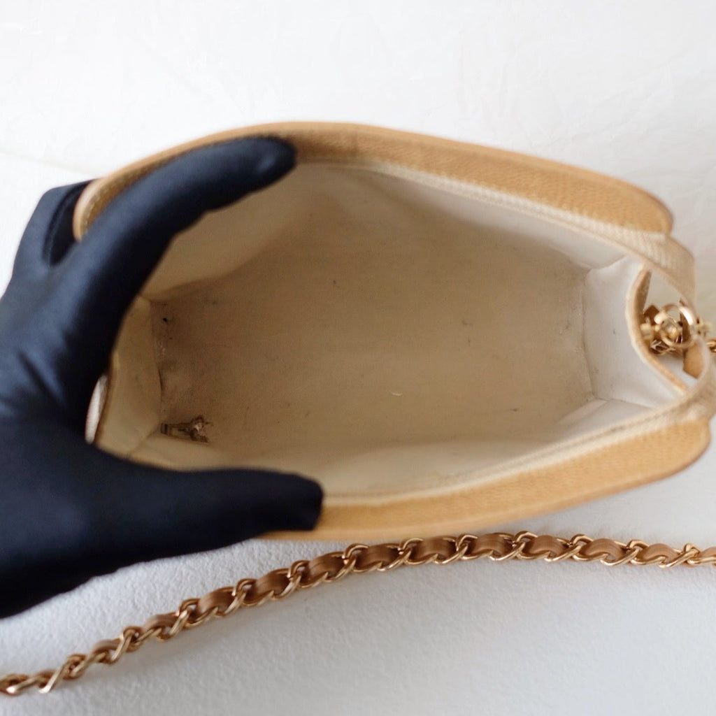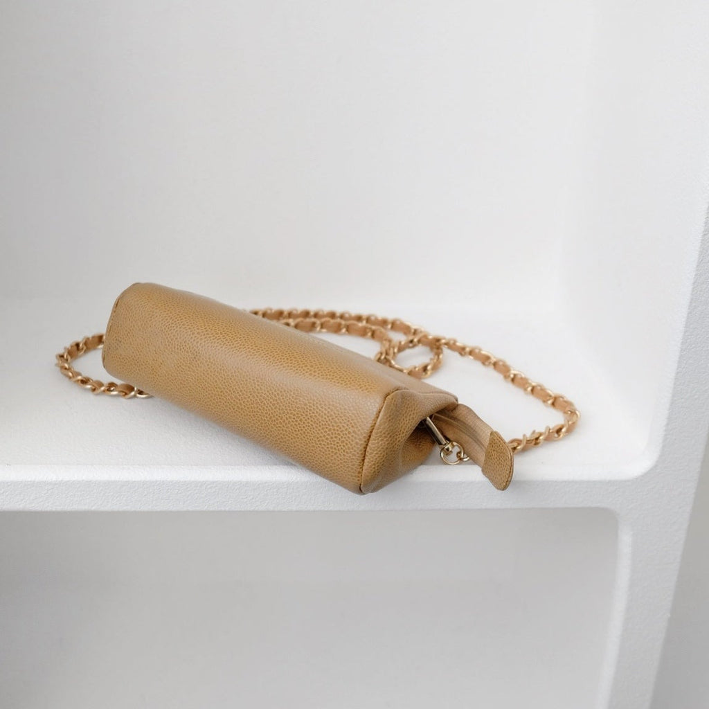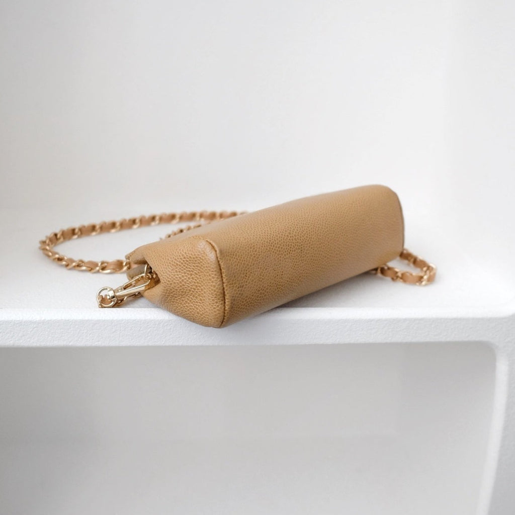 Chanel vintage beige quilted cowhide pouch +chain