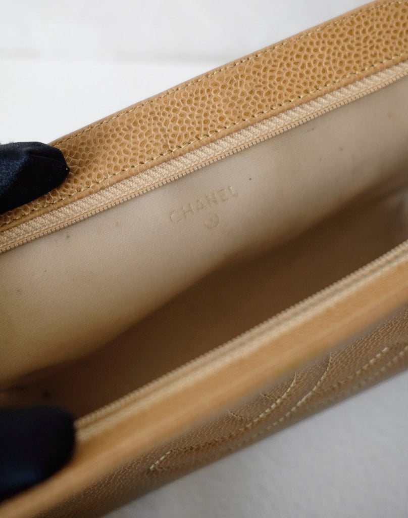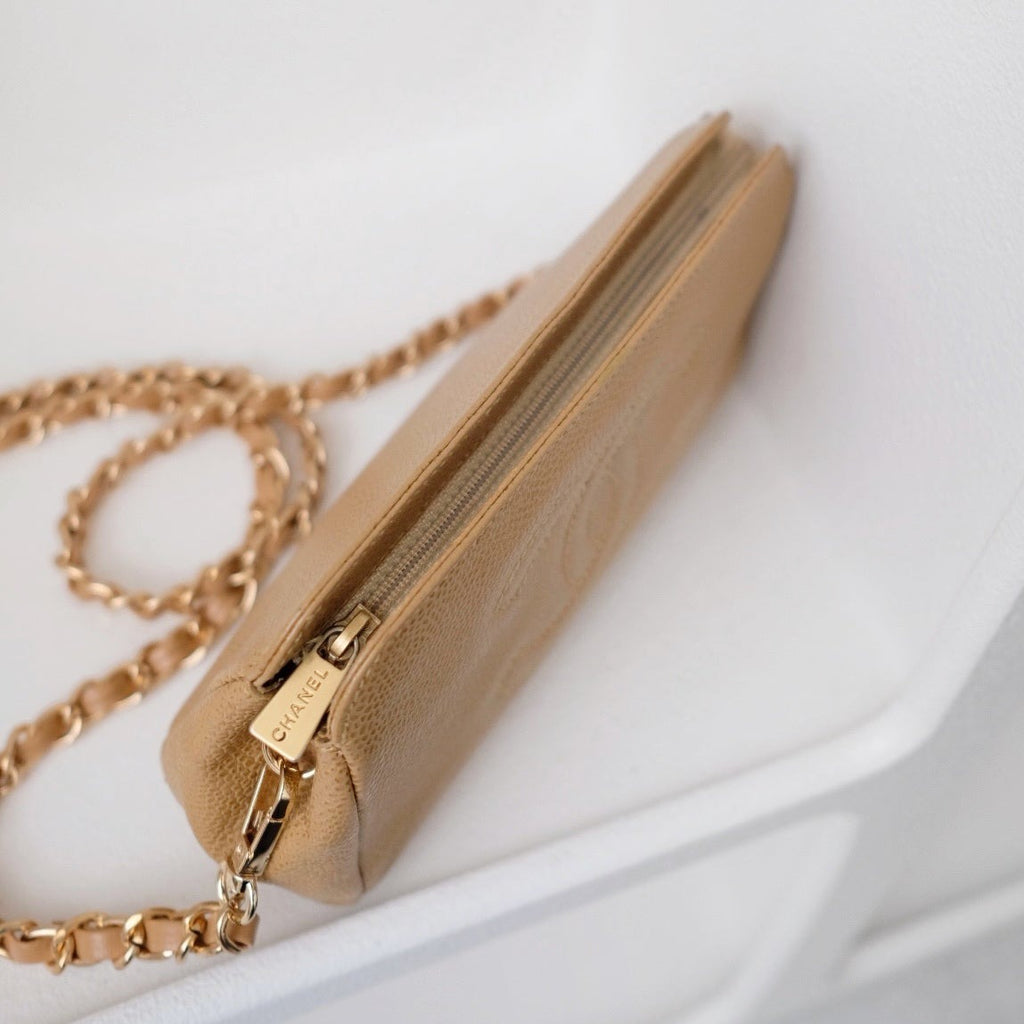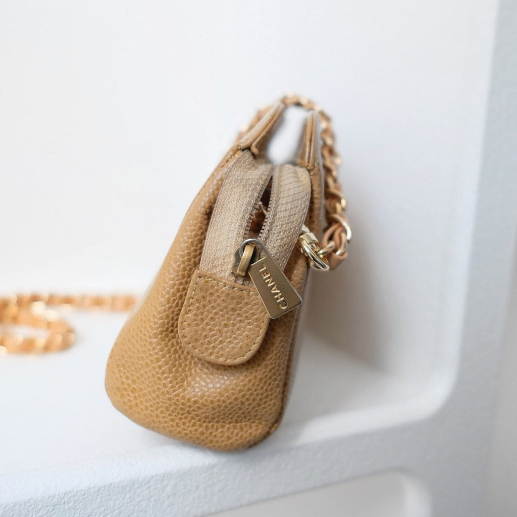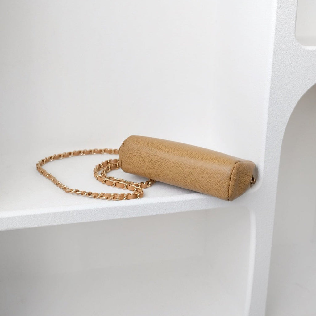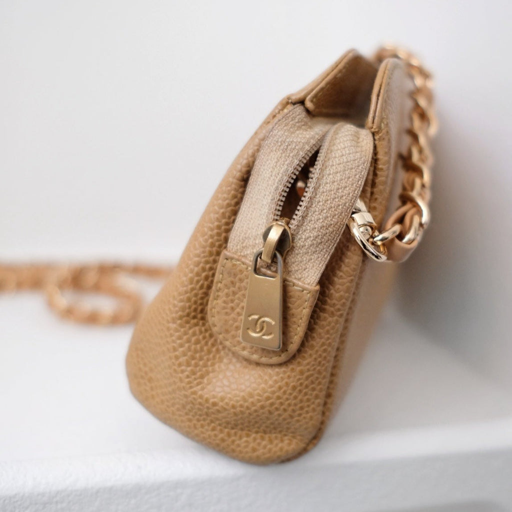 Chanel vintage beige quilted cowhide pouch +chain
