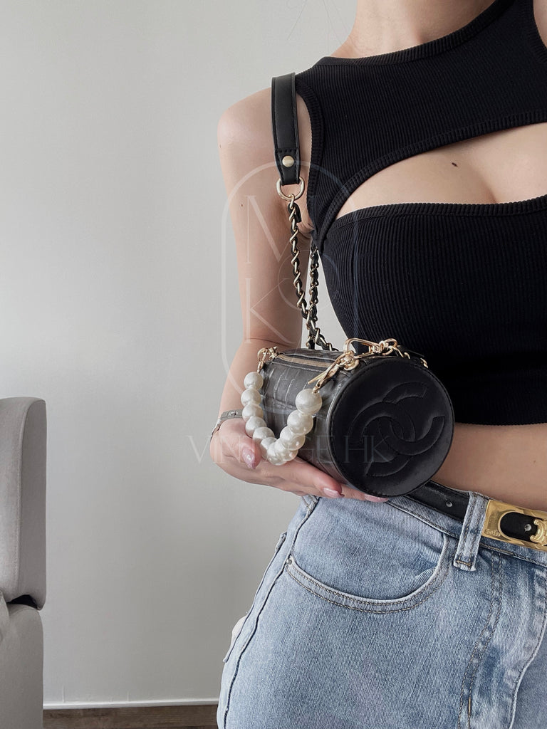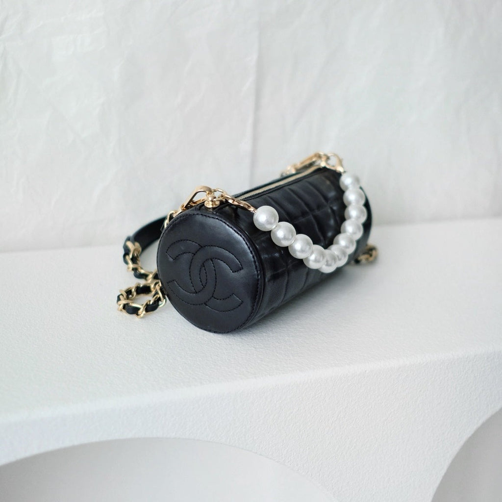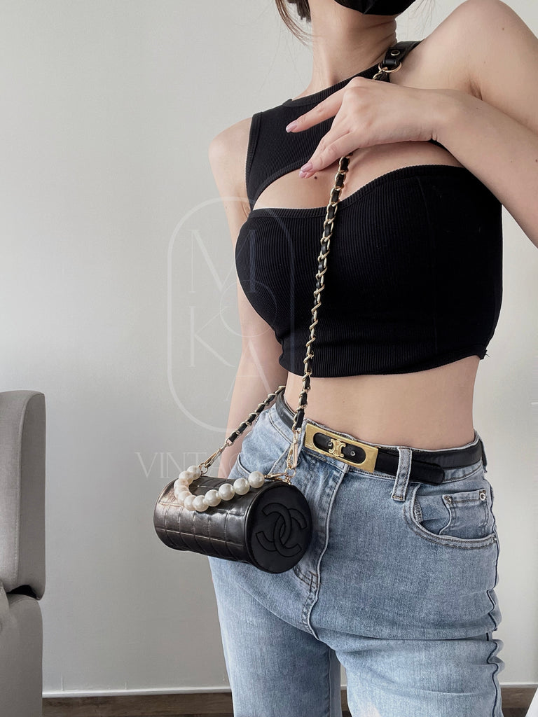 Chanel vintage chocolate bar cc cylinder bag