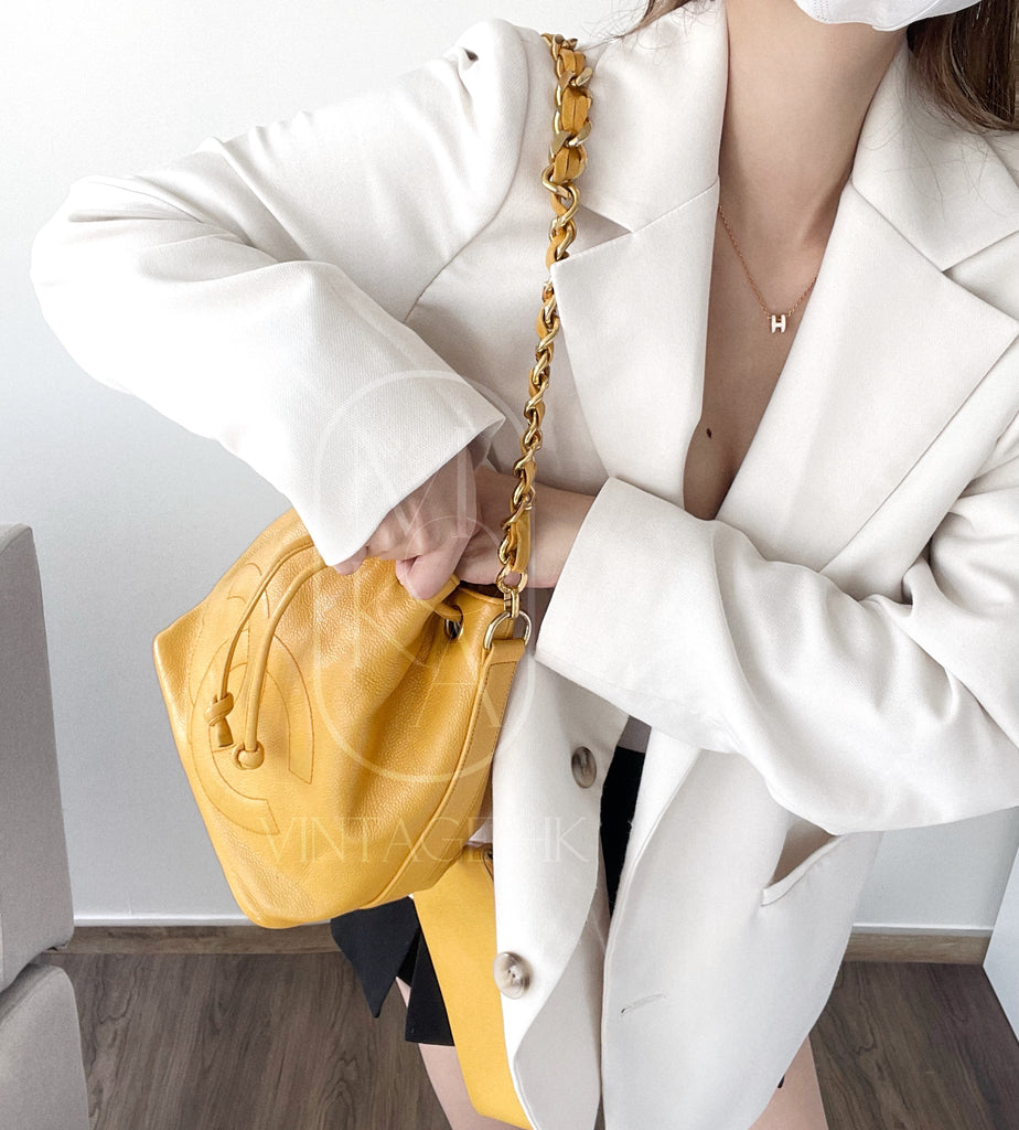 Chanel vintage CC drawstring cowhide bucket bag