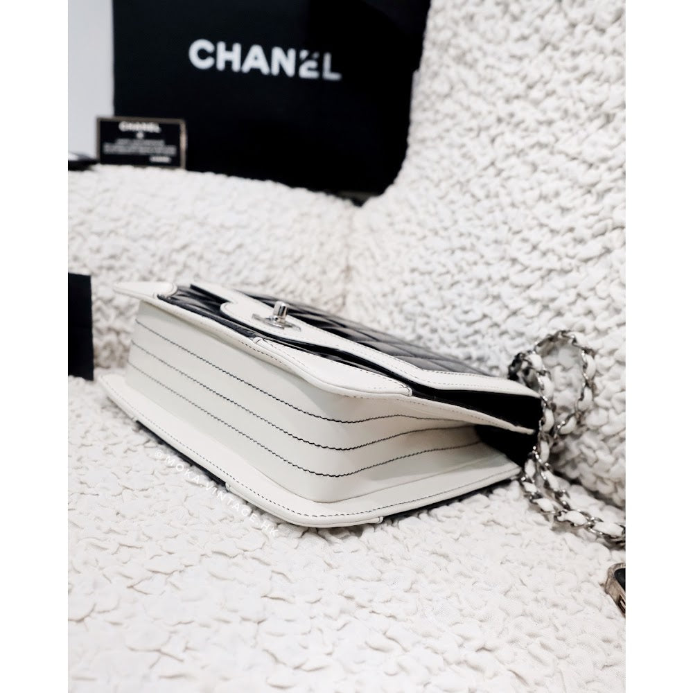 Chanel Patent Leather Splicing sheepskin Square Quilt Flap Bag