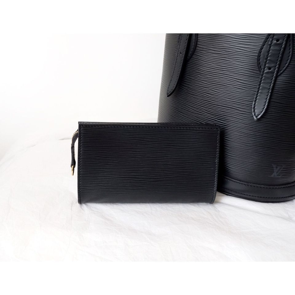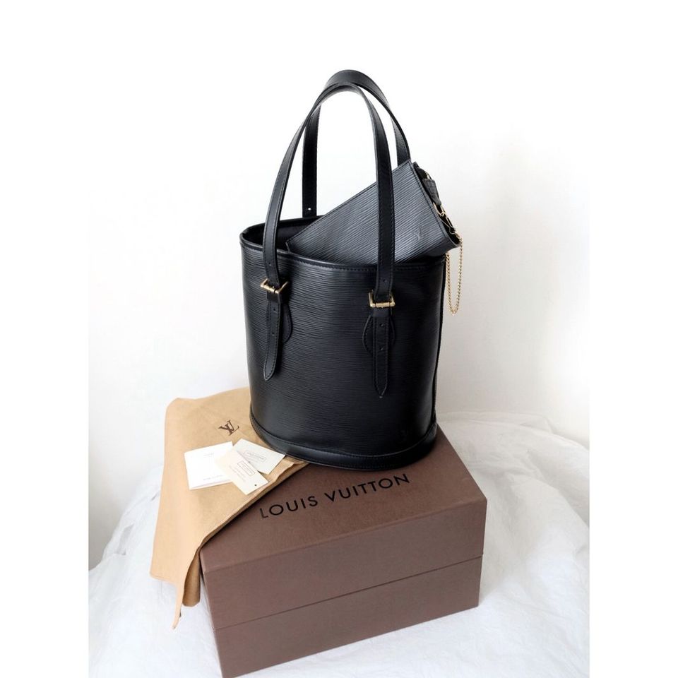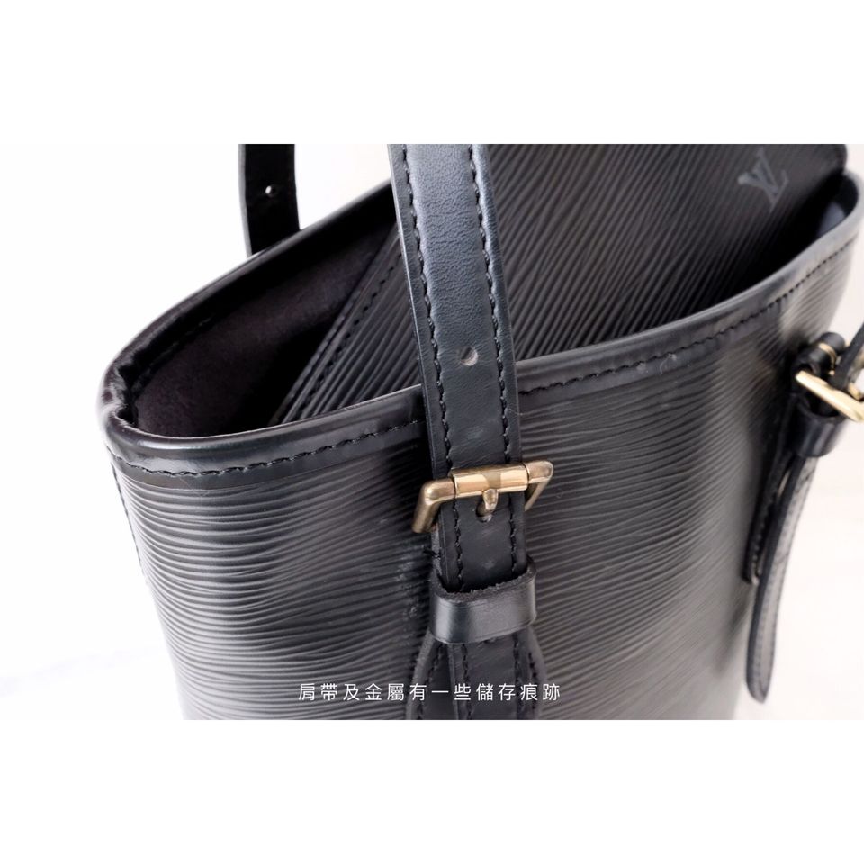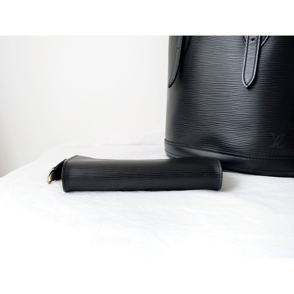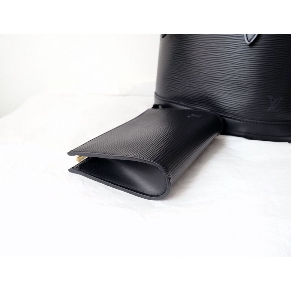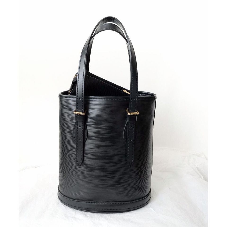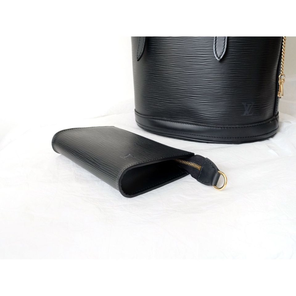 Louis Vuitton black epi leather petit bucket with pouch