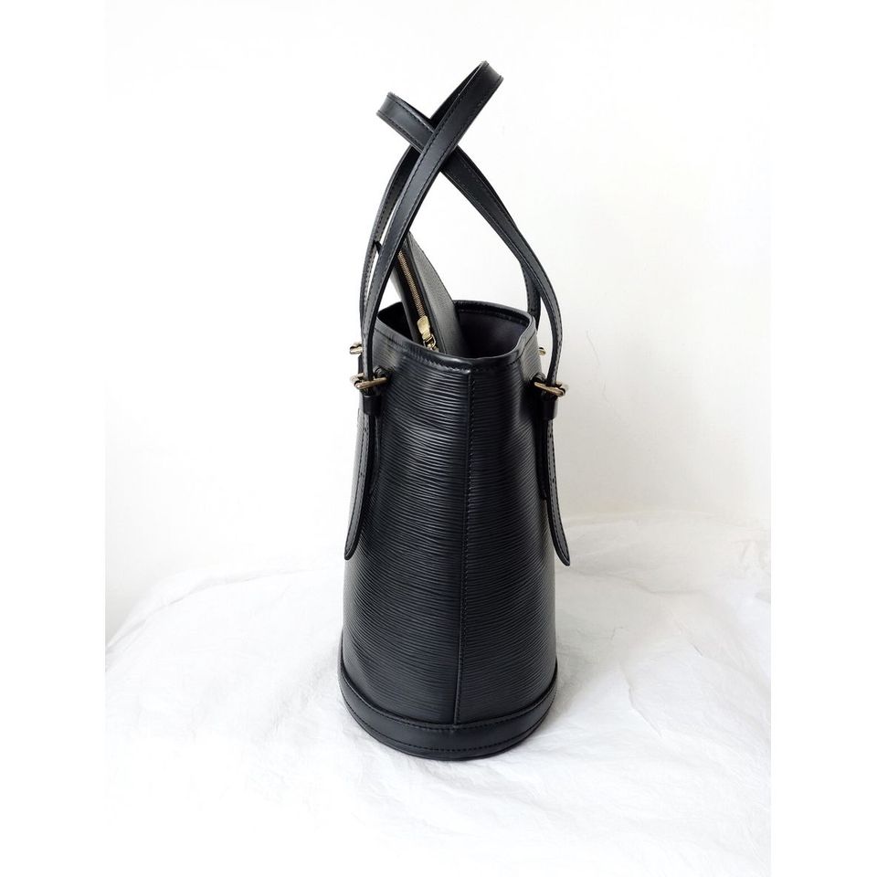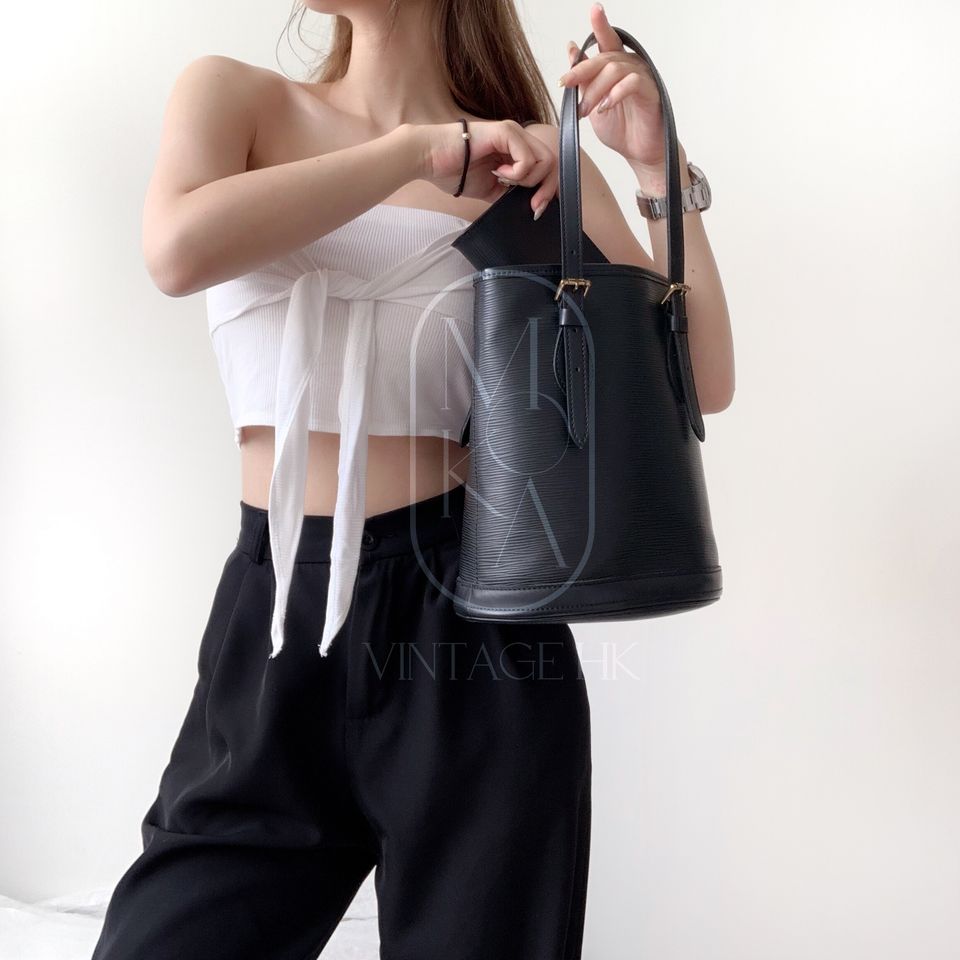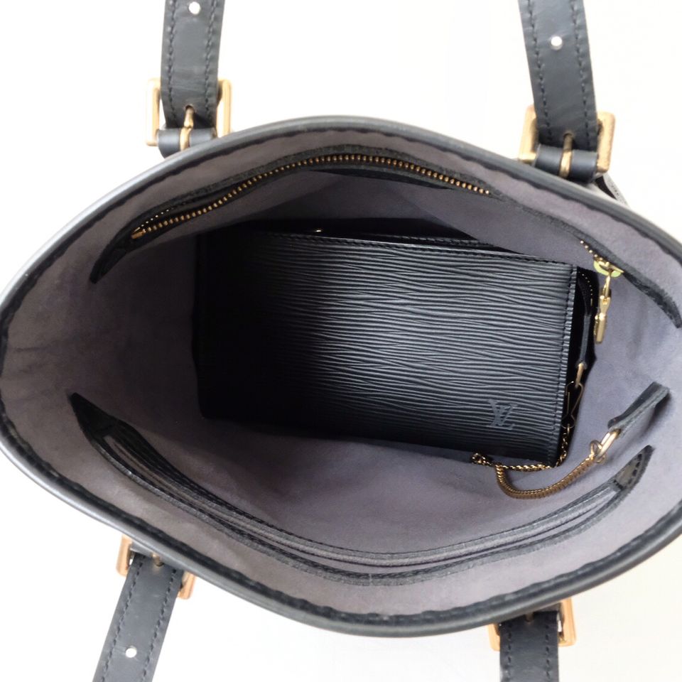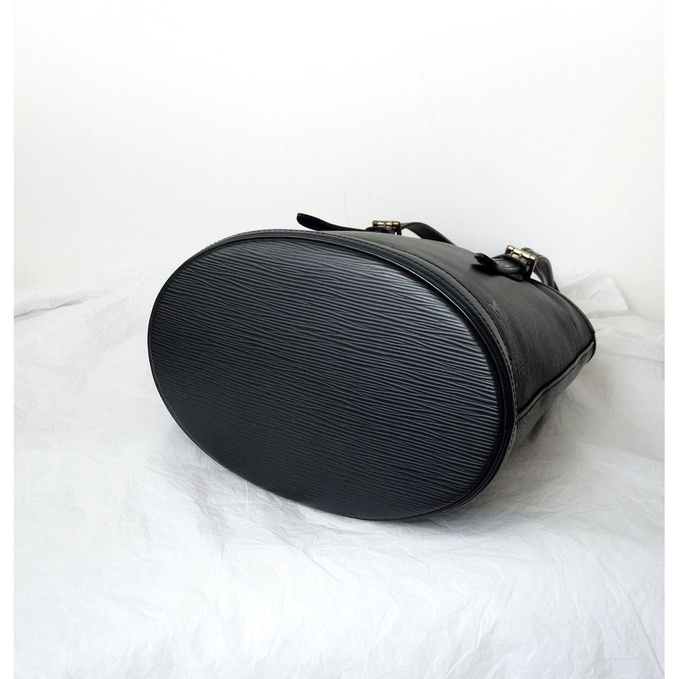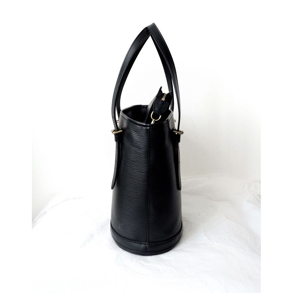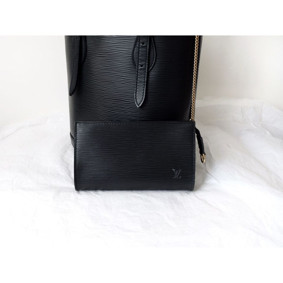 Louis Vuitton black epi leather petit bucket with pouch