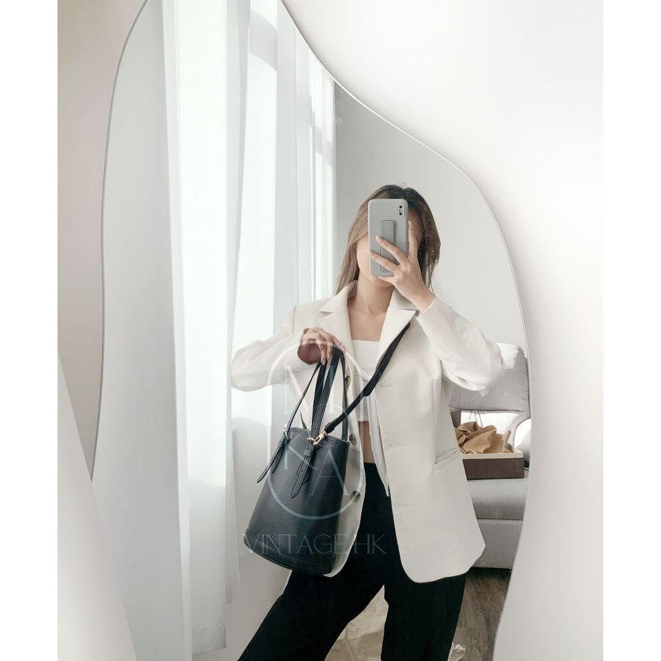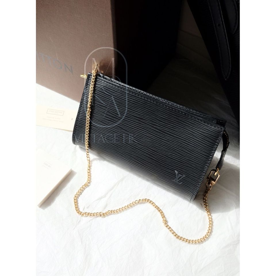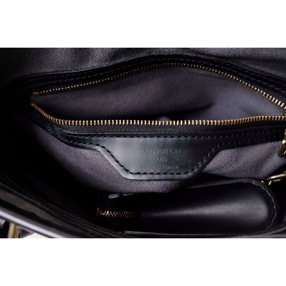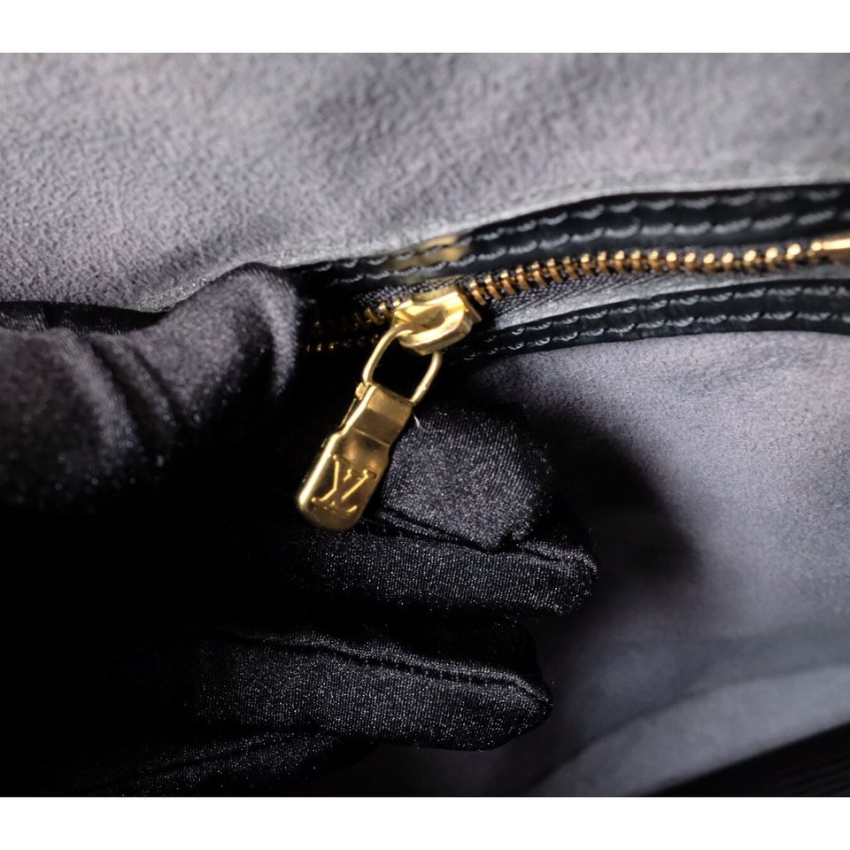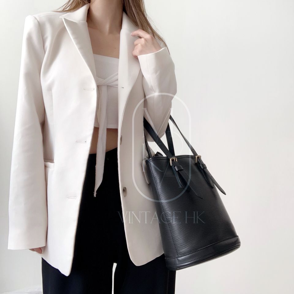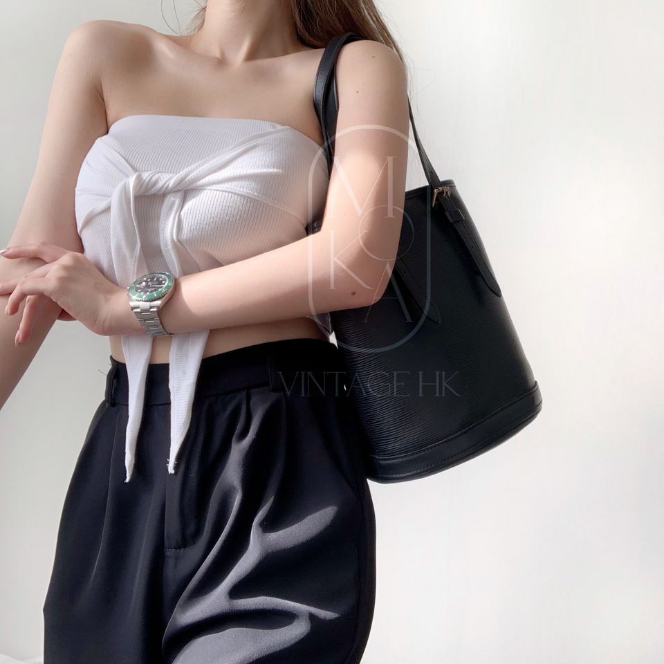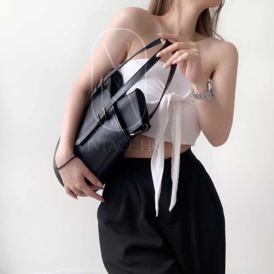 Louis Vuitton black epi leather petit bucket with pouch