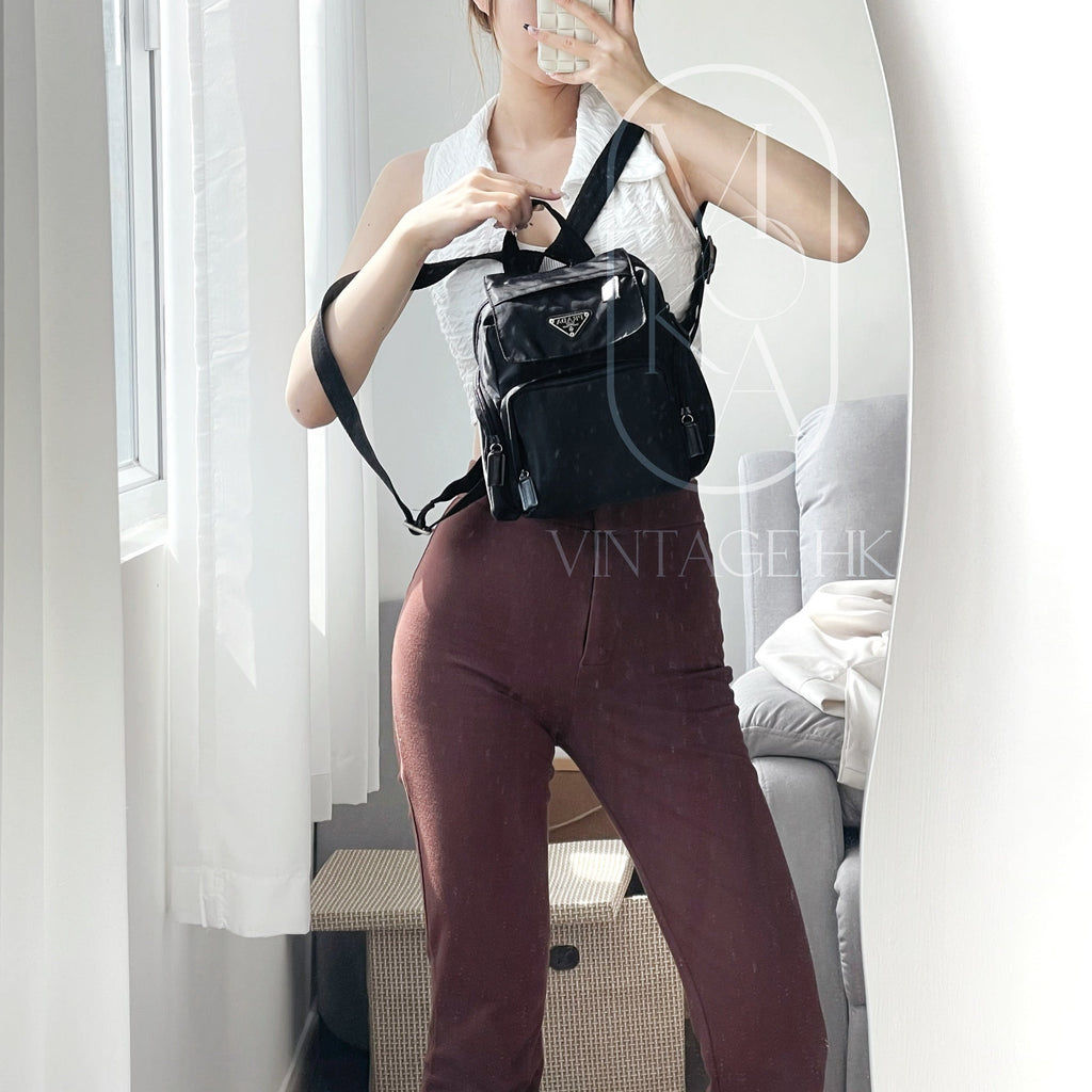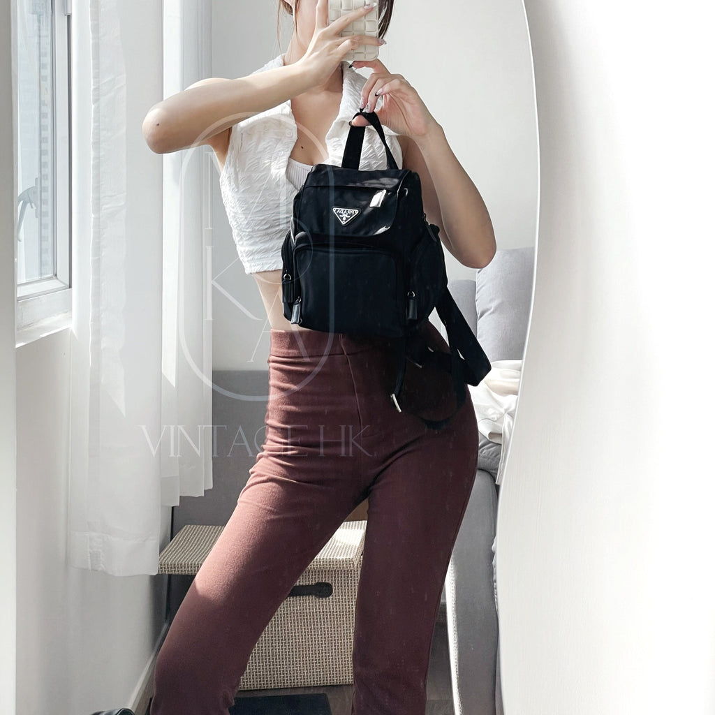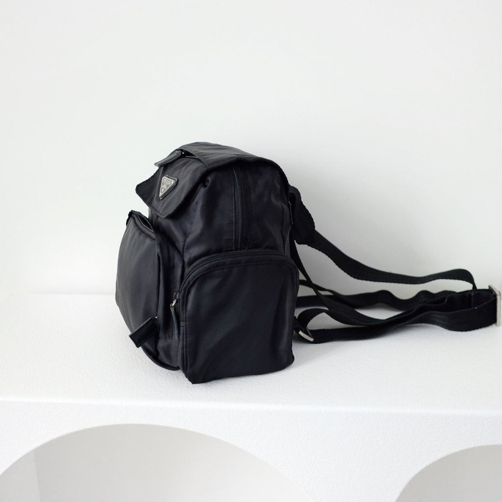 Prada drawstring tessuto black backpack