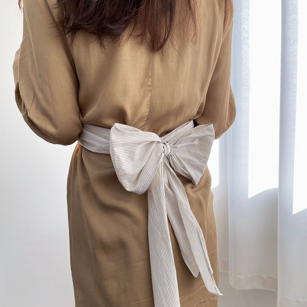 條紋綁帶超修腰型 背後的蝴蝶結也是特色之一