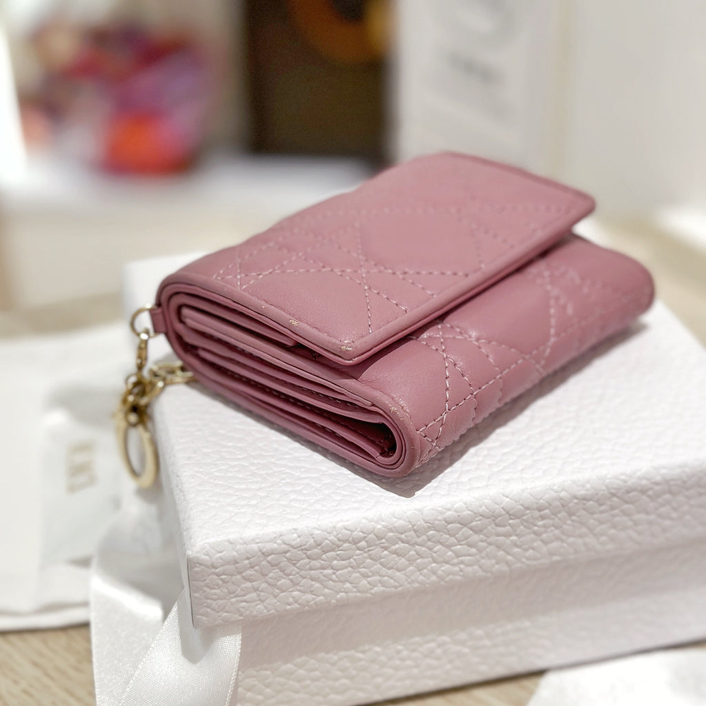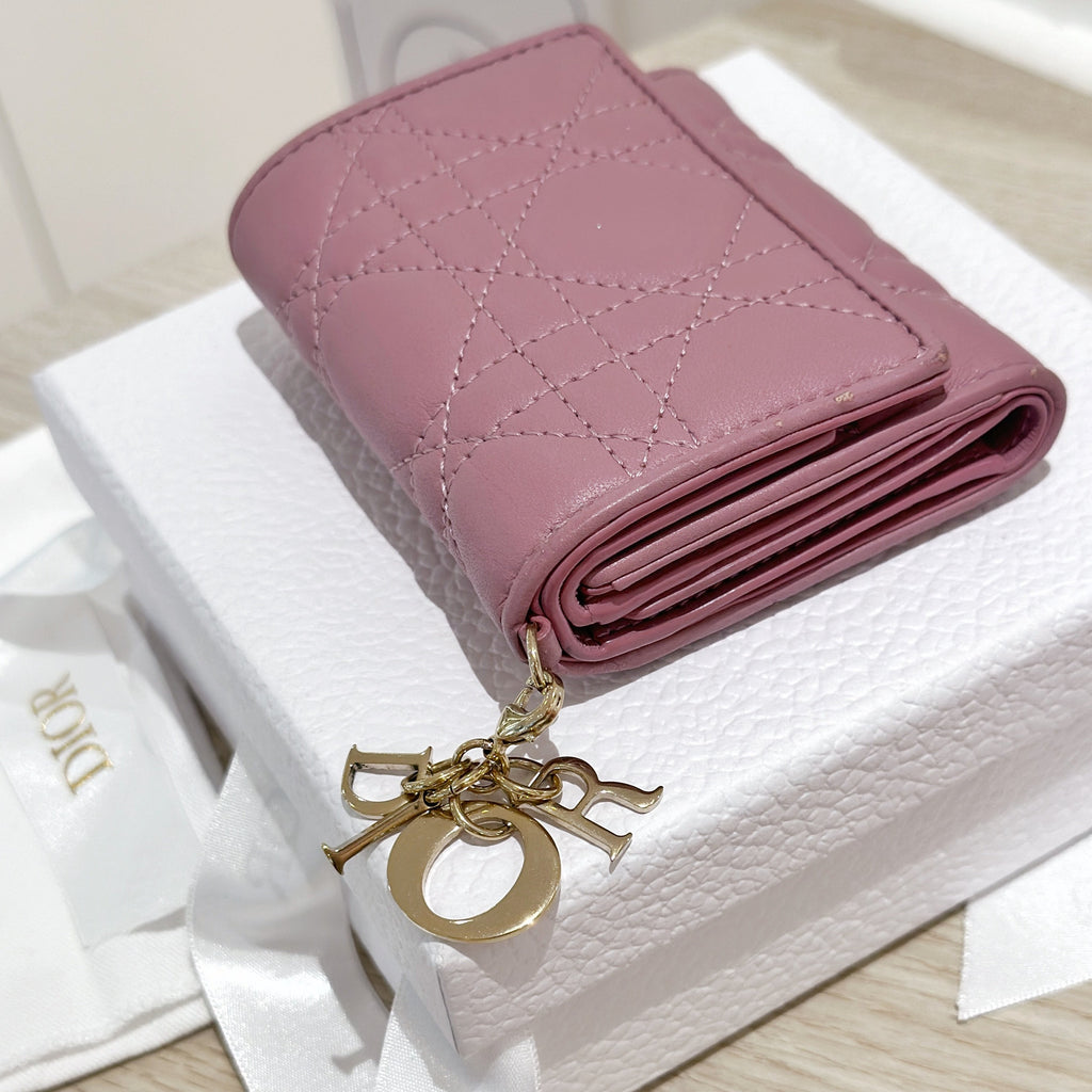 Christian Dior LADY DIOR Lambskin Folding Wallet Small Wallet